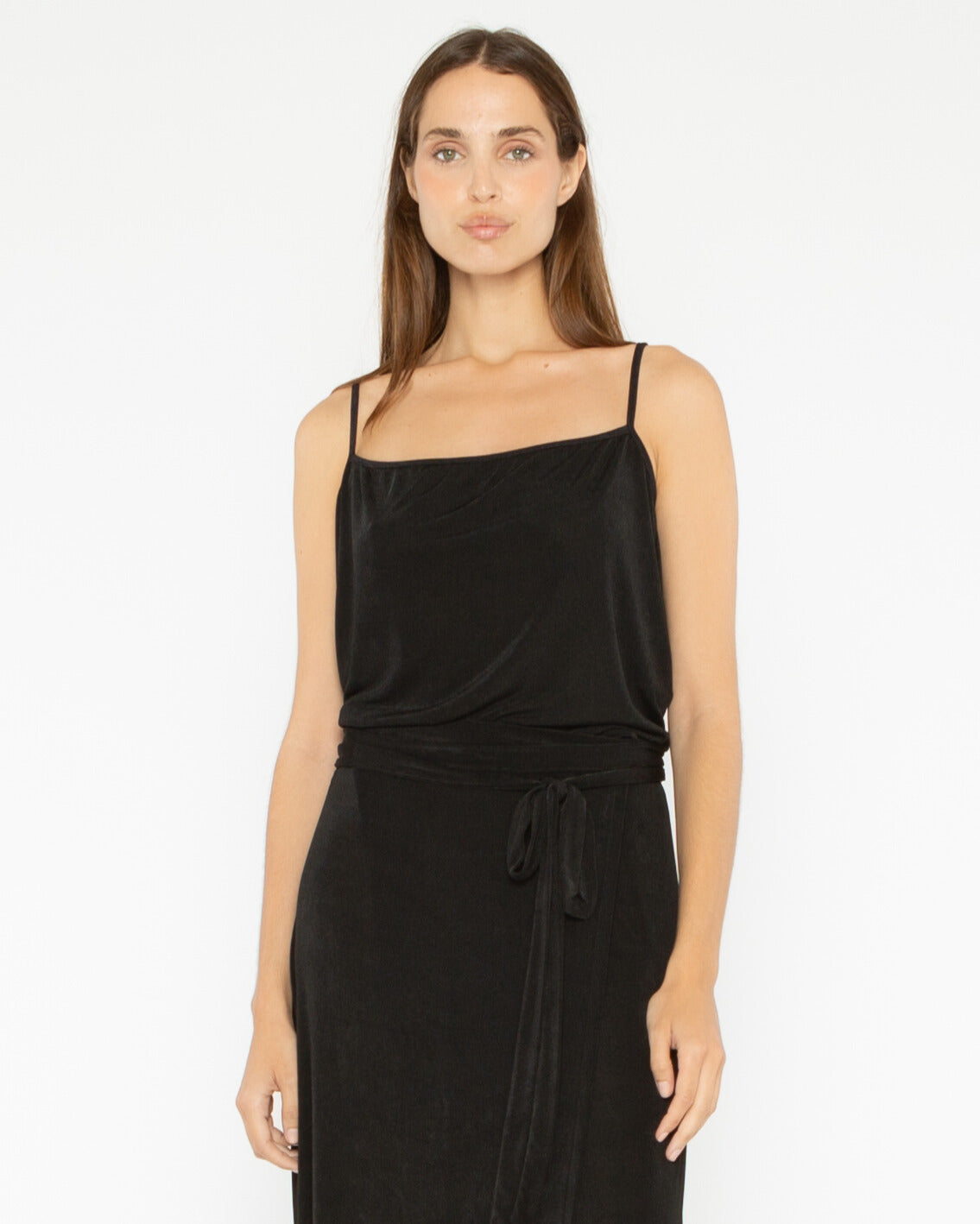 The perfect summer top. Wrinkle-free slinky fabric. The slip top pairs perfectly with our lounge pant and wrap skirt- perfect for relaxing by the beach or dress it up for a night on the town. Effortless. Stunning.