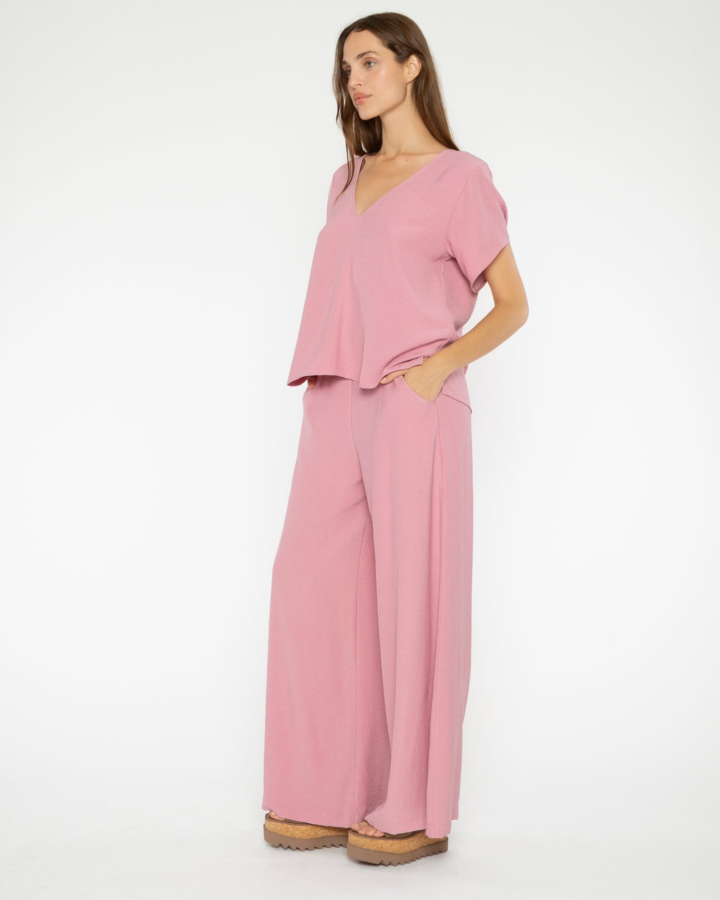 Amaranth Crepe Everyday V Neck
