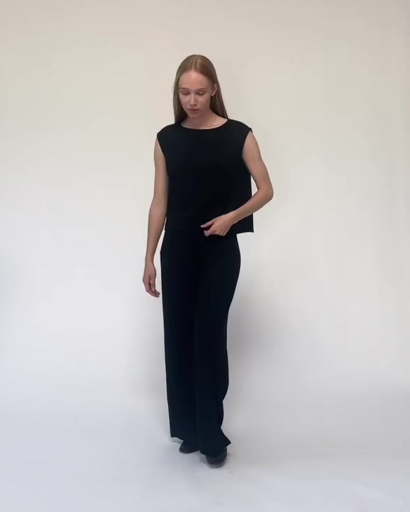 We love the simplicity of a perfect shell top. Buttery soft, effortless (and wrinkle-free) cashmere-like blend pairs beautifully with any pant/skirt.