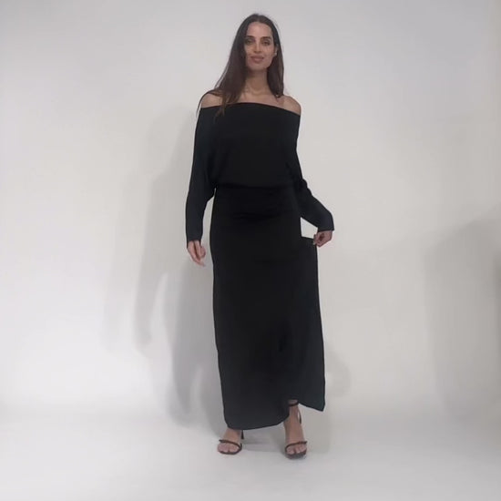 Unbothered. Undone. Unmistakably cool. This throw-on-and-stun silhouette is crafted from luxurious jersey that drapes and flows like liquid. The long, fluid cut and minimalist lines create a modern shape that feels as effortless as it looks.