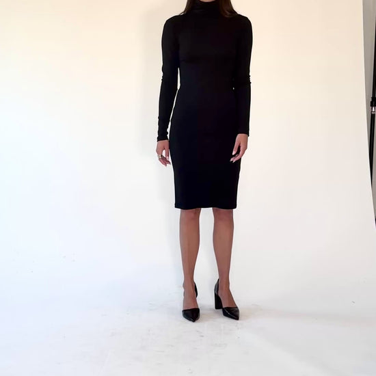 Our perfect-fitting turtleneck, reimagined as a sleek midi dress. Ballet-inspired with a high neckline and long sleeves, it creates an elegant, body-skimming silhouette that flatters every shape.