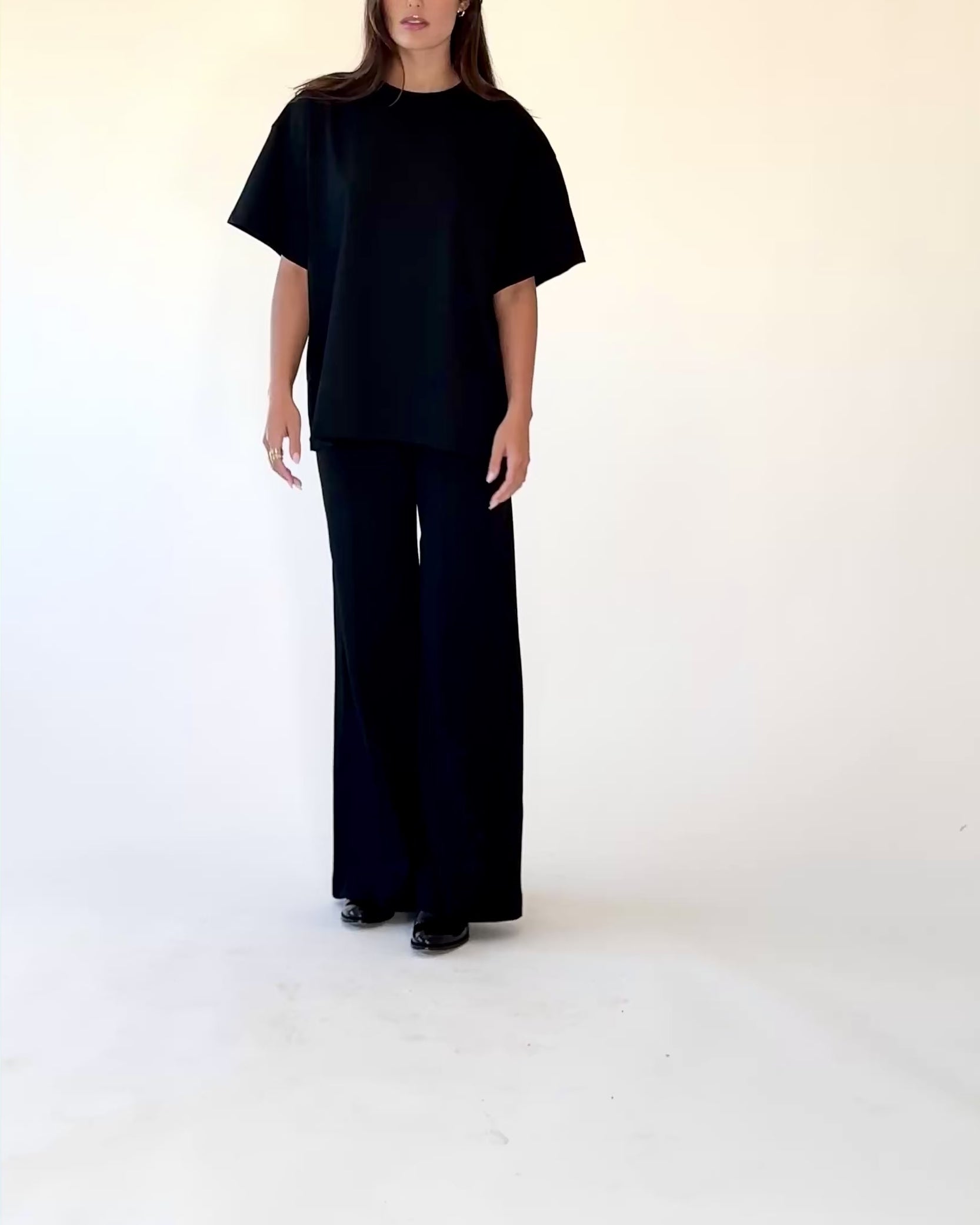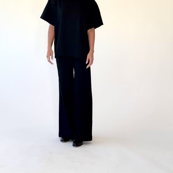 Bold proportion, effortless structure. Our short-sleeve shirt is reimagined in an oversized silhouette with sculptural lines and a relaxed fit. Designed to pair with our iconic wide-leg pants, it delivers quiet drama with modern minimalism.