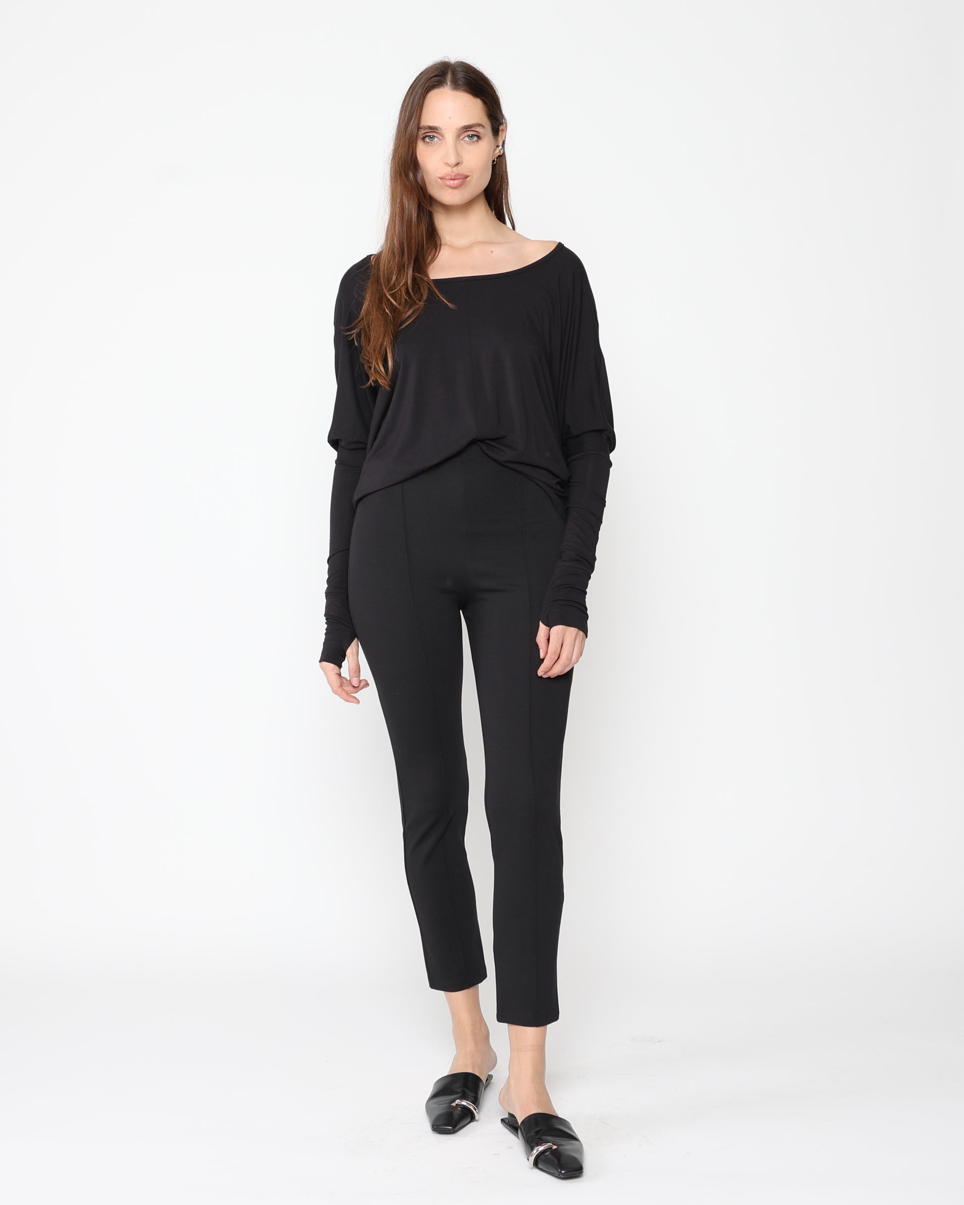 An essential silhouette with a modern edge. The Ankle-Length Perfect Pant features a high-rise waist and a tailored ankle-grazing hem, crafted from our signature luxurious ponte knit. This double-knit fabric gives the look of structured suiting with the soft, flexible comfort of a knit — making it your go-to pant for elevated everyday wear.