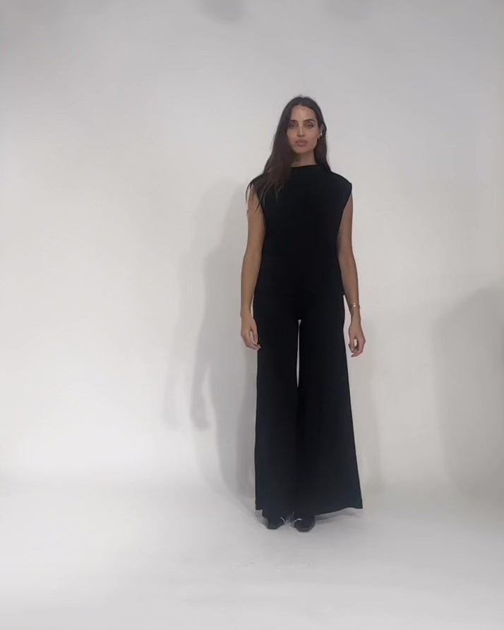 Black Scuba Wide Leg Pant