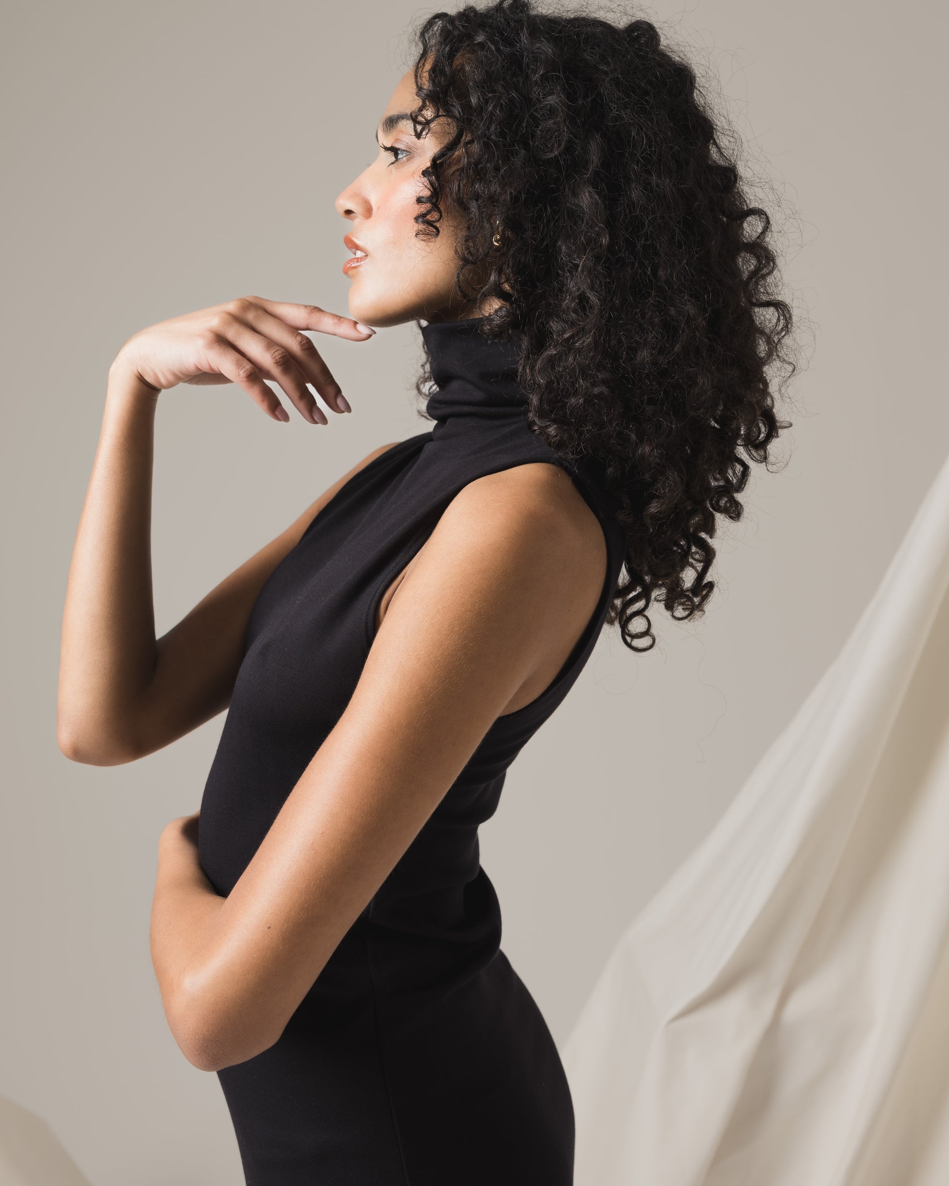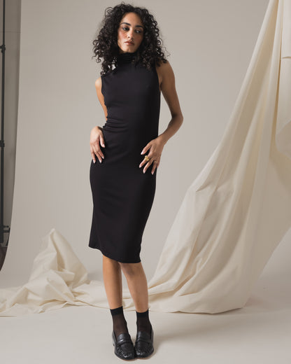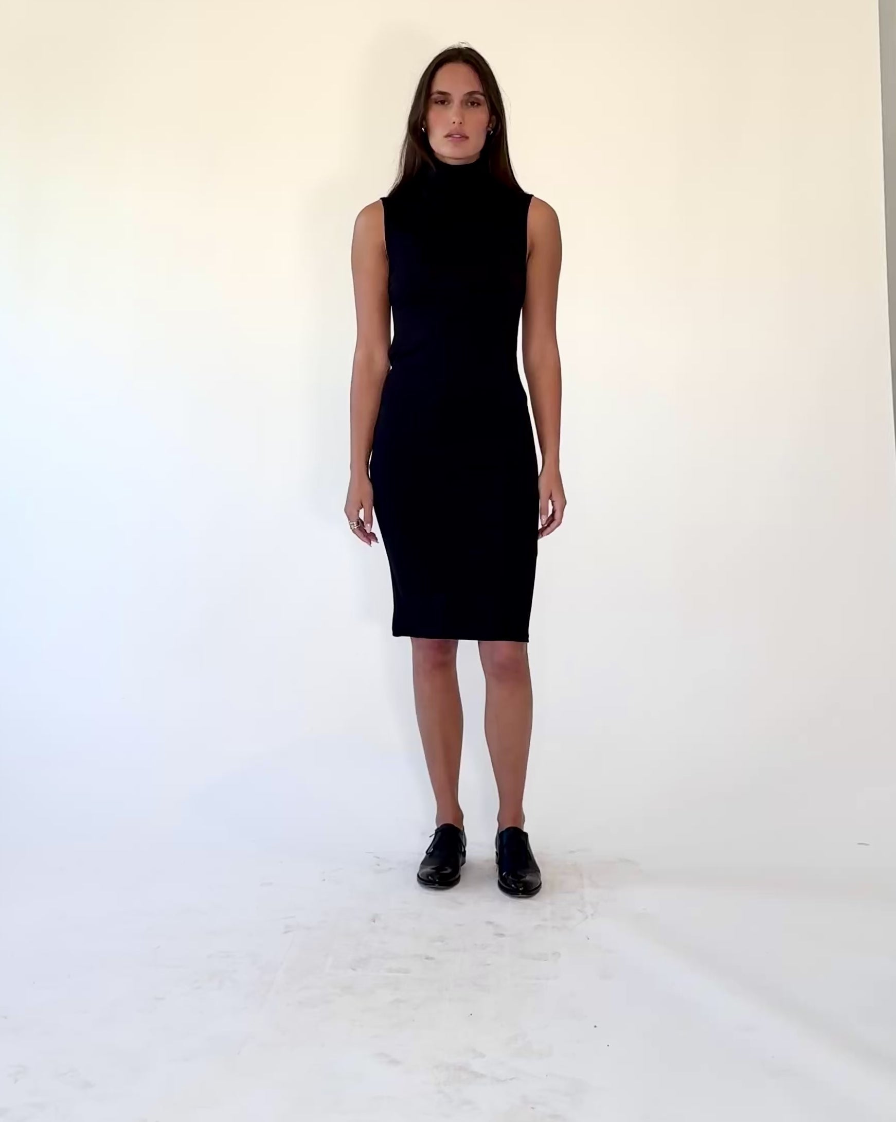 Our perfect-fitting turtleneck, reimagined as a sleek tank dress. Inspired by the ballet world, it features a high neckline and a streamlined silhouette that flatters every shape.