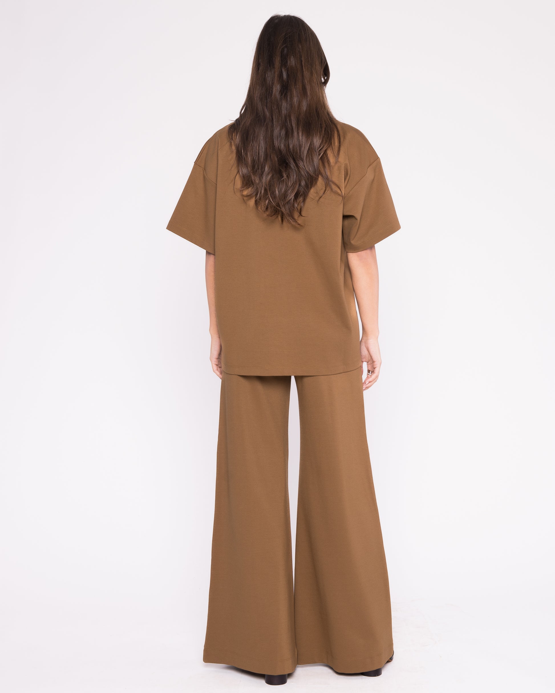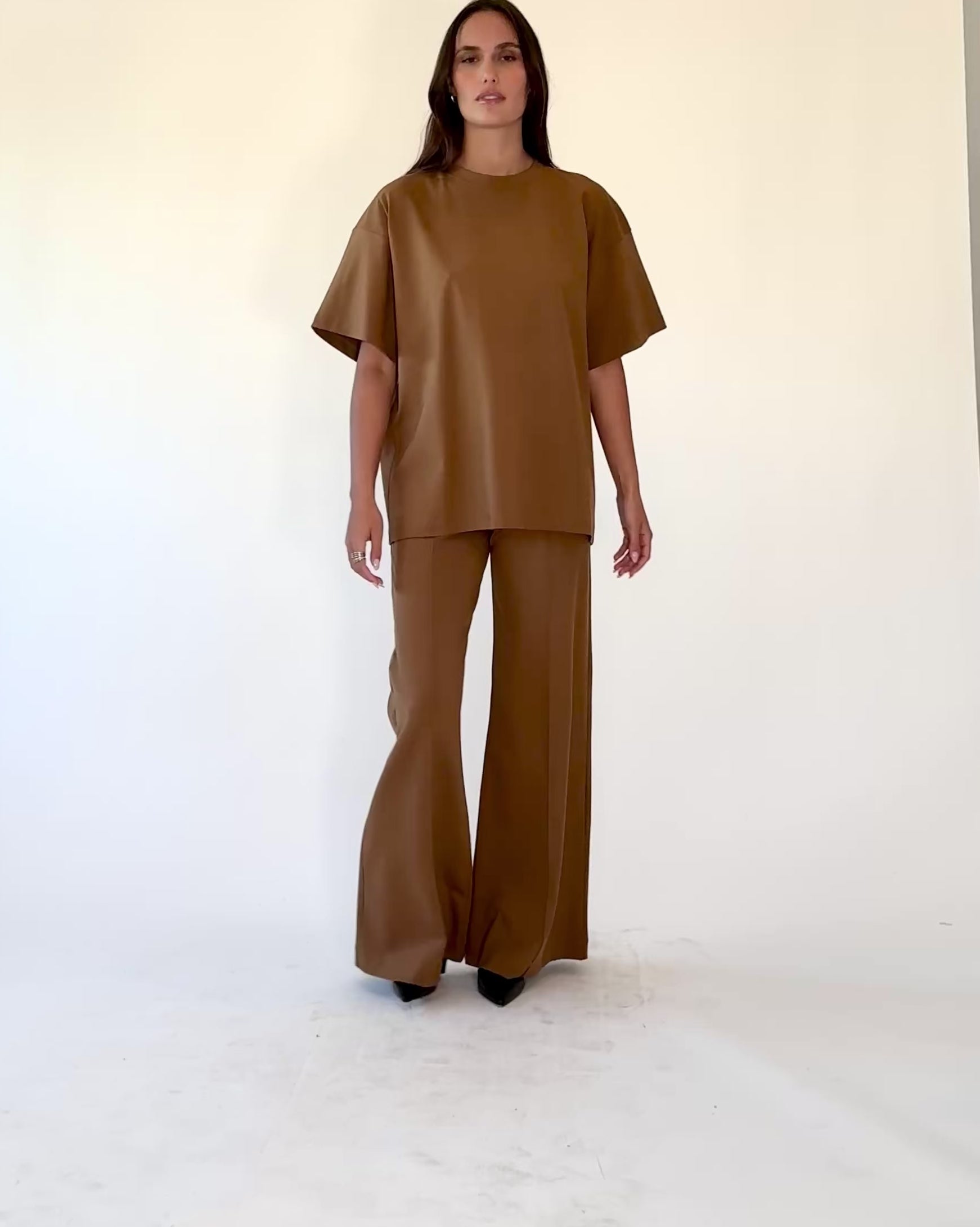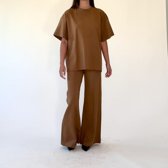 Bold proportion, effortless structure. Our short-sleeve shirt is reimagined in an oversized silhouette with sculptural lines and a relaxed fit. Designed to pair with our iconic wide-leg pants, it delivers quiet drama with modern minimalism.