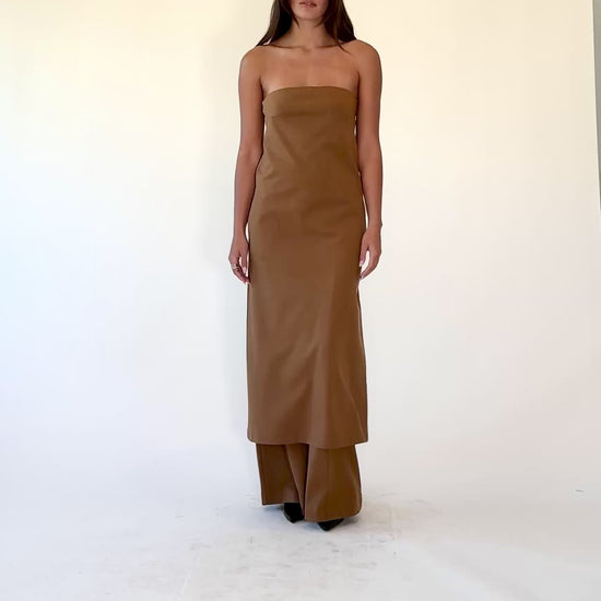 Sculpted. Secure. Effortlessly refined. Our elevated take on the strapless column dress is crafted from signature ponte knit for structure, comfort, and understated drama.