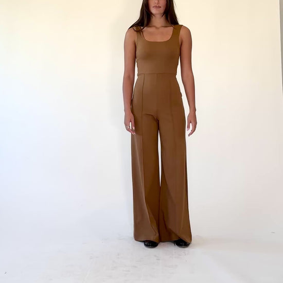 Camel Ponte Knit Tank Wide Leg Jumpsuit