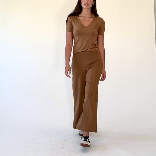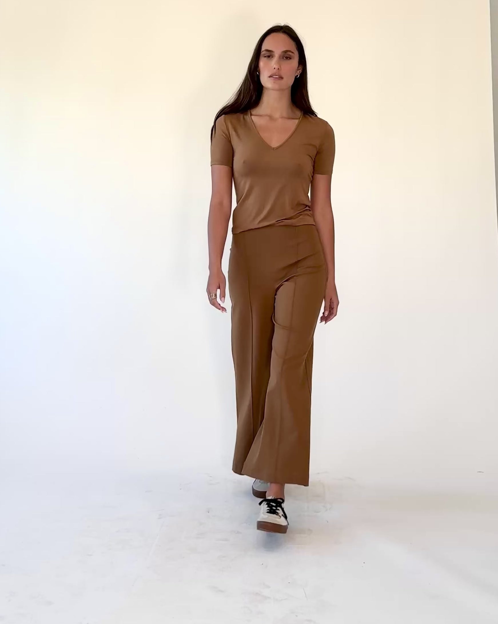 Camel Ponte Knit Wide Leg Pant: Cropped