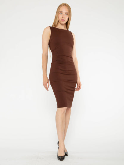 Chocolate Ponte Knit Ruched Dress
