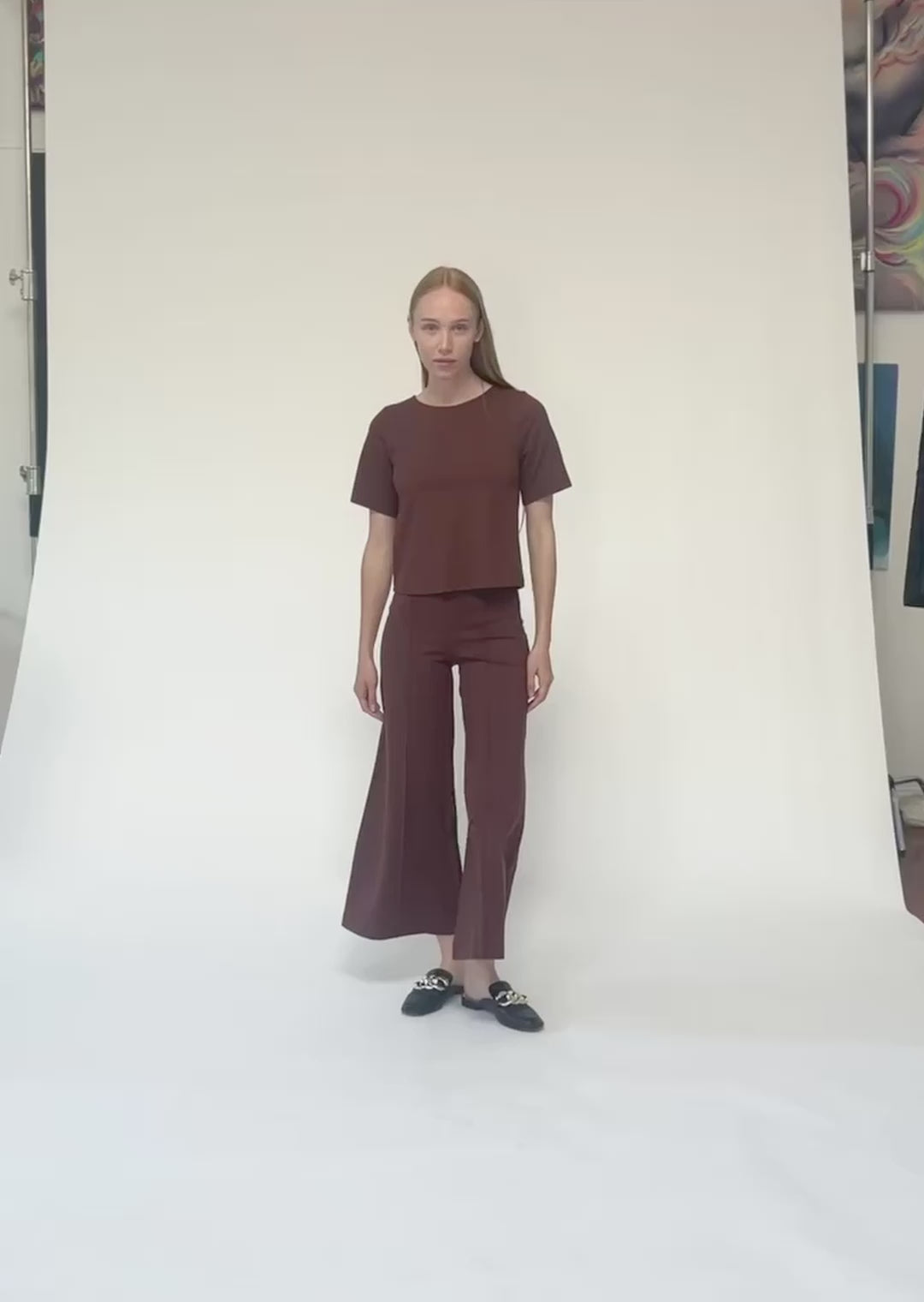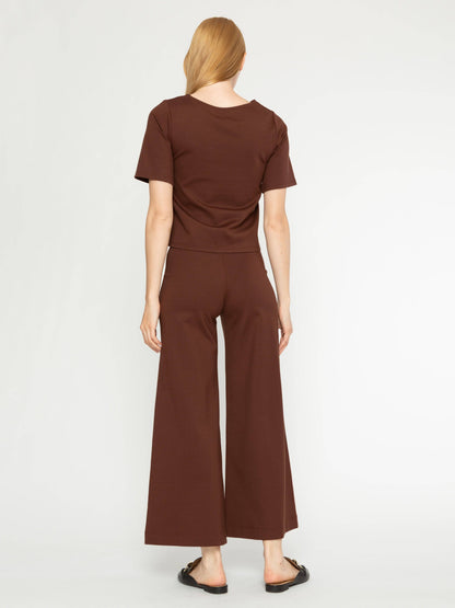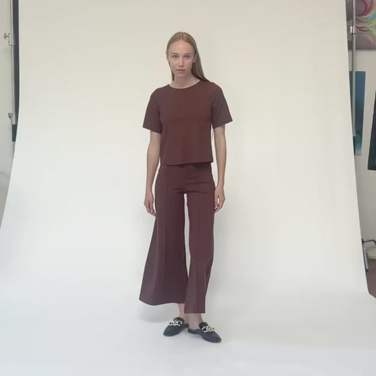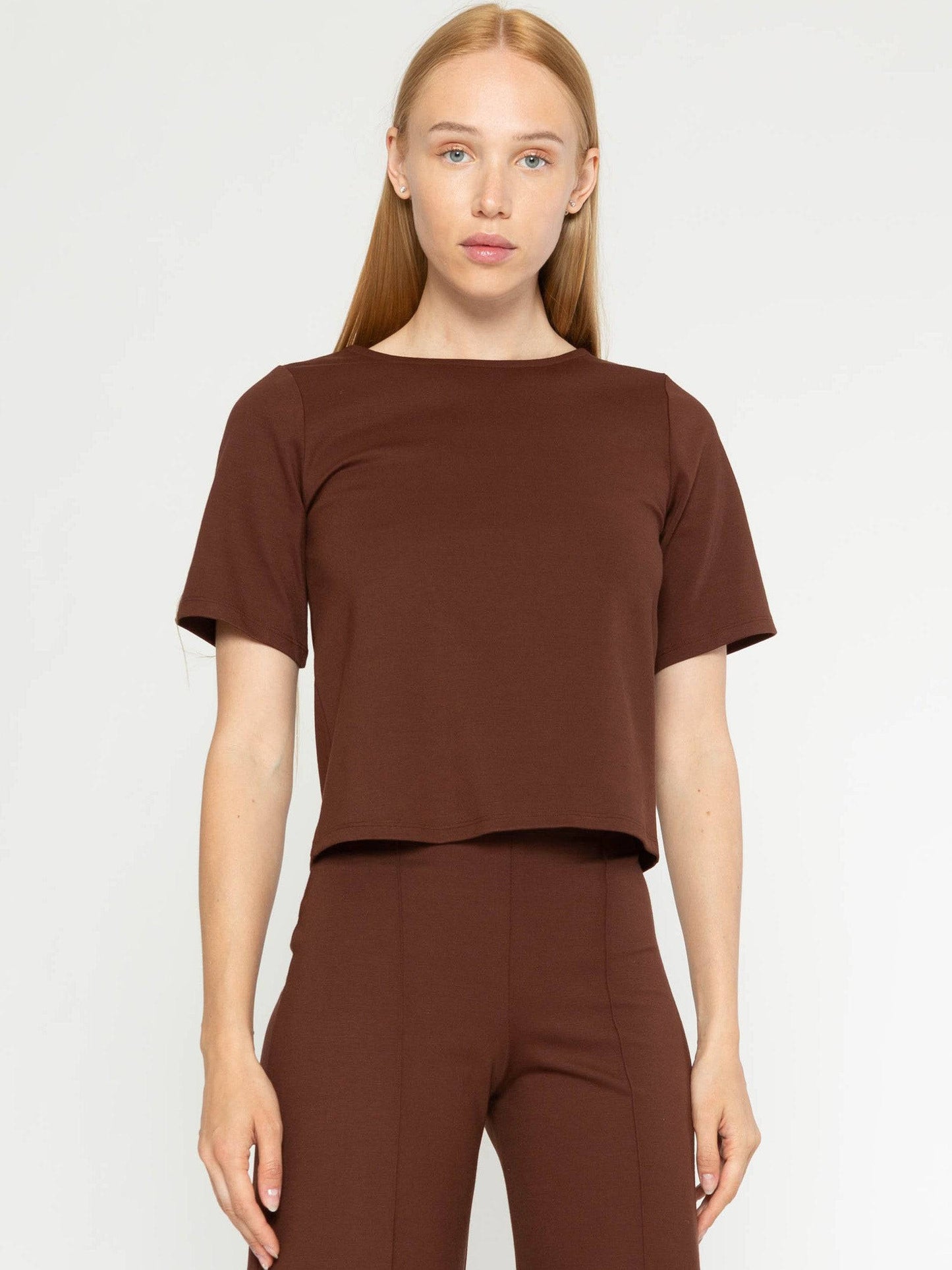Chocolate Ponte Knit Short Sleeve Top Extended