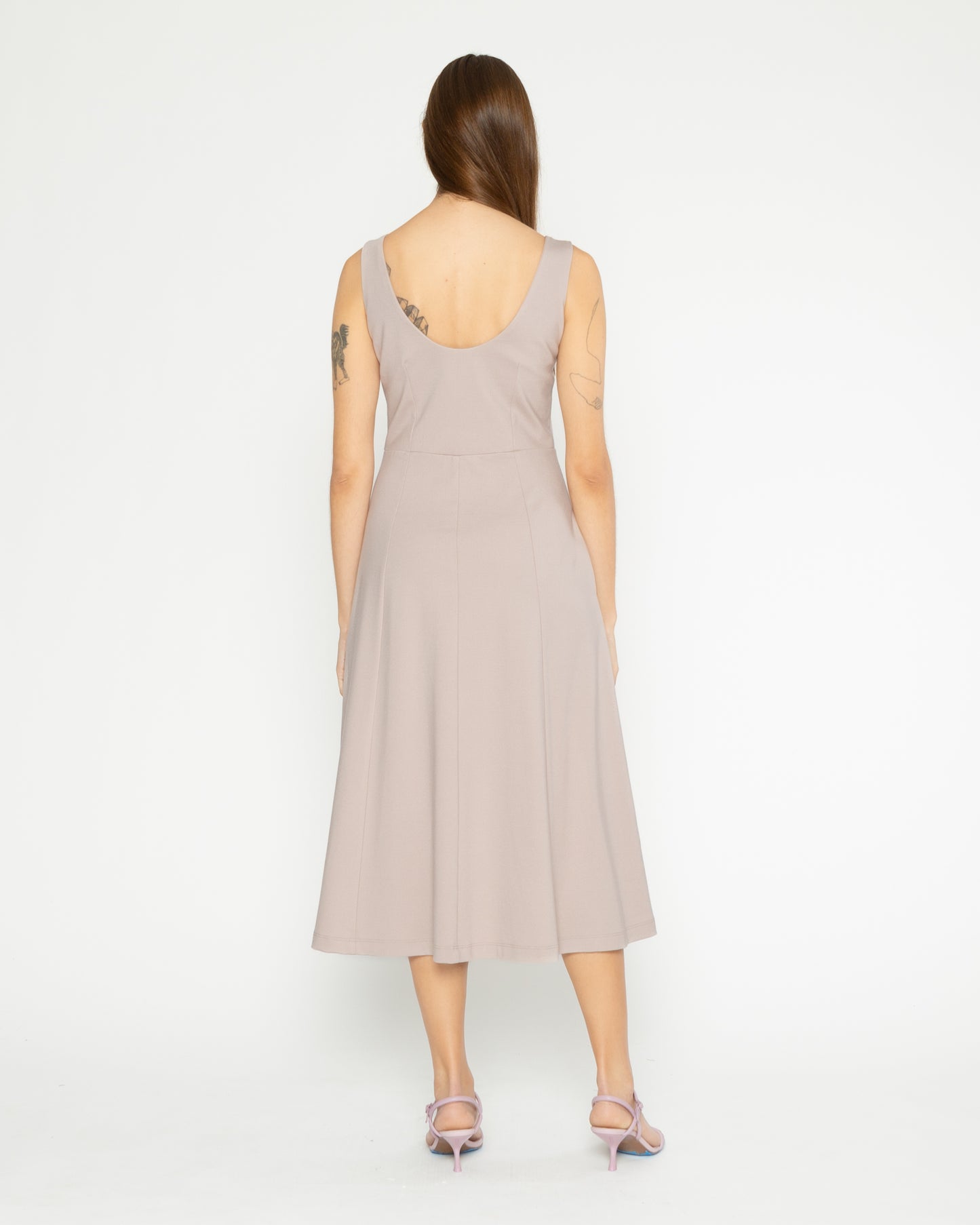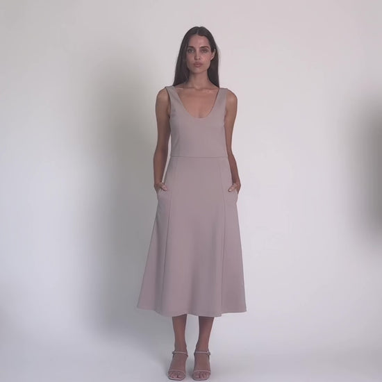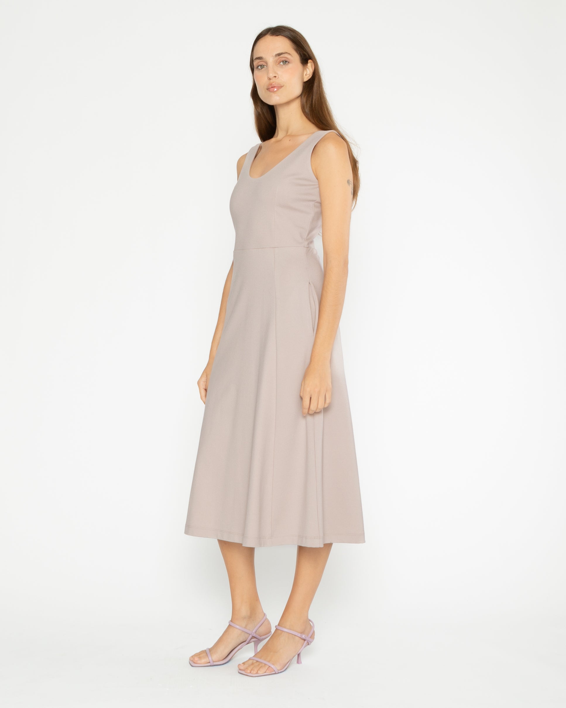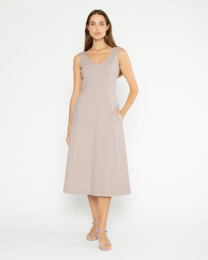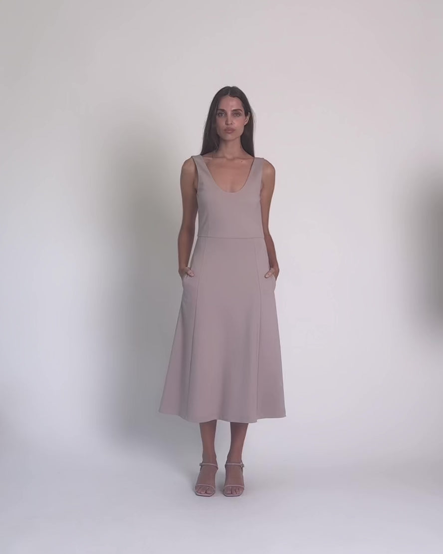 Ponte knit midi-length dress. It has pockets! The ponte fabric gives the appearance of a structured look with all the comfort of a soft knit.