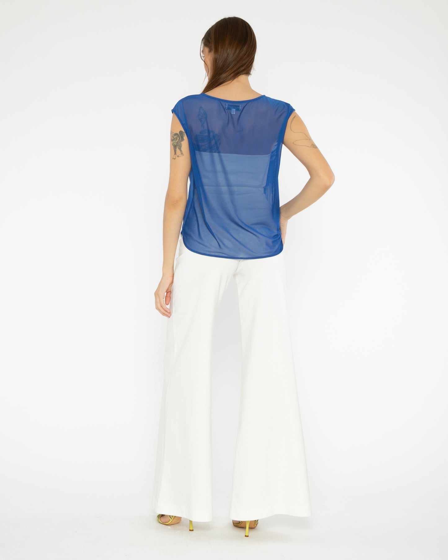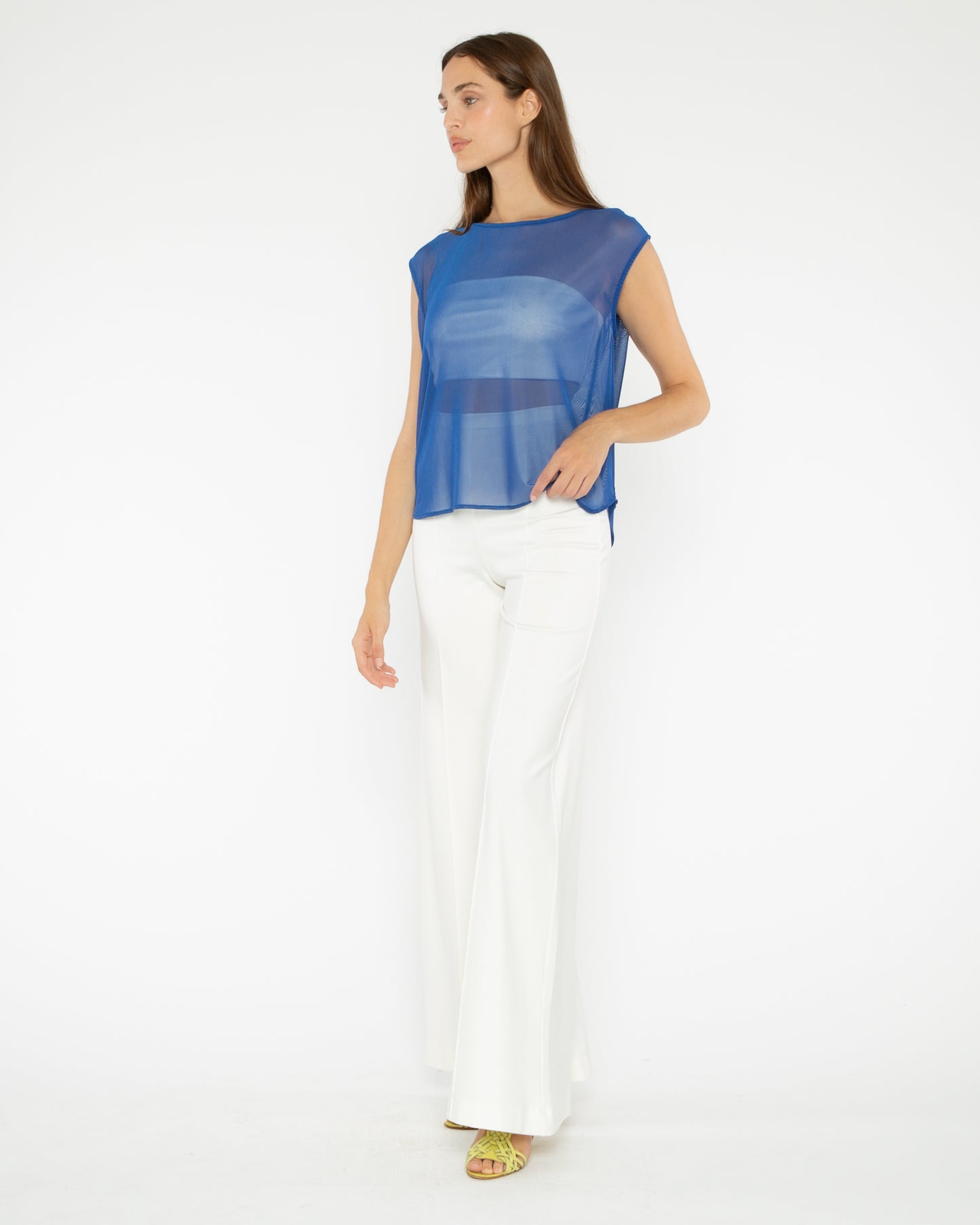 The simplicity of a perfect shell top in an airy mesh fabric. The perfect way to elevate a casual look. Pair with our bandeau top and wide leg pant.