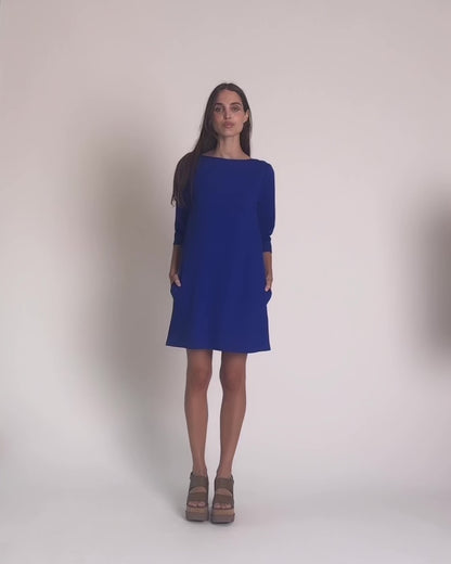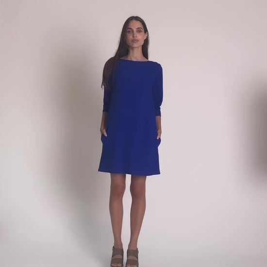 The go-to dress that does it all. Our Classic A-Line Dress is timeless, versatile, and undeniably flattering — featuring a 3/4-length sleeve, a wide neckline, and a softly tailored A-line silhouette that skims the body and lands just above the knee at a 34" length.
