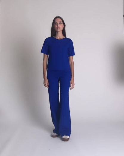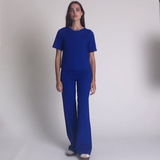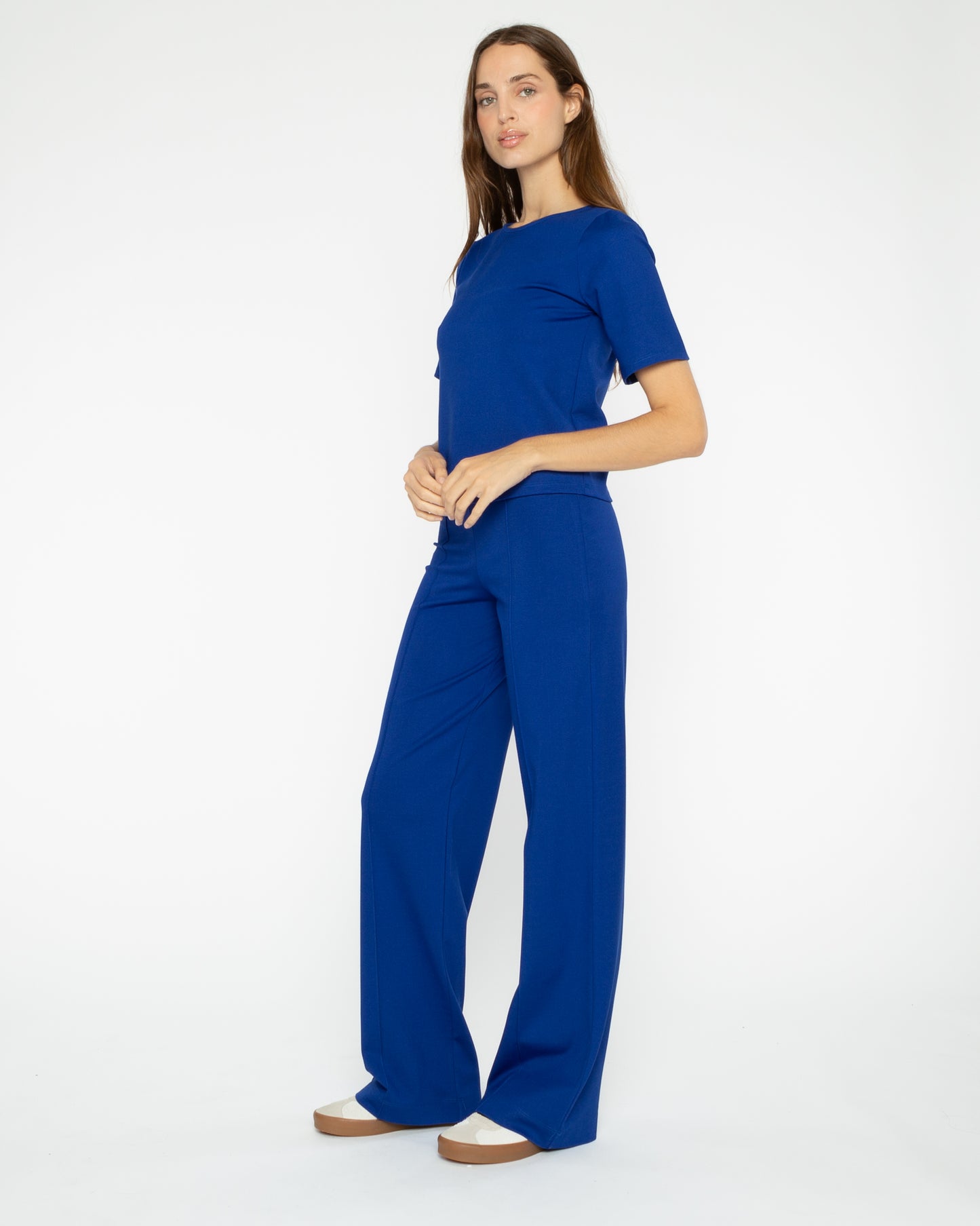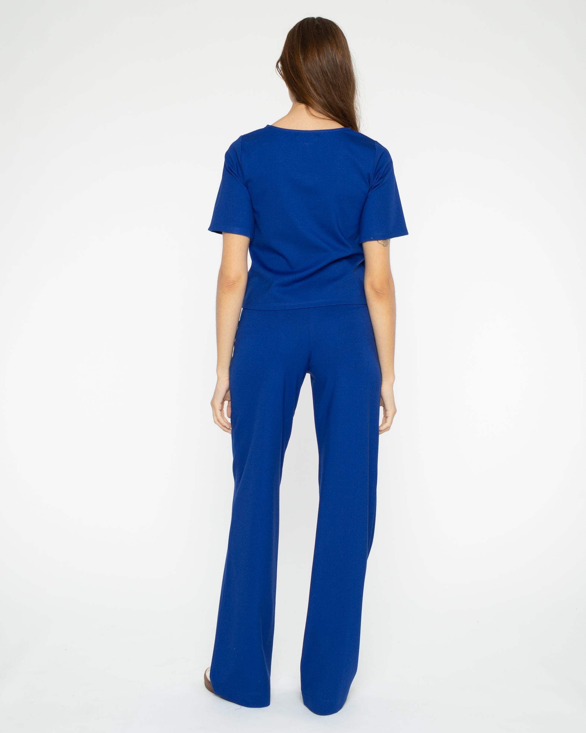 Cobalt Ponte Knit Short Sleeve Top Extended