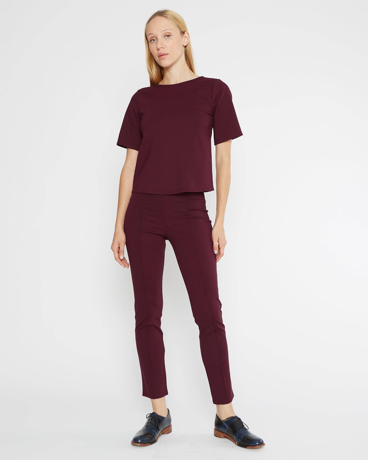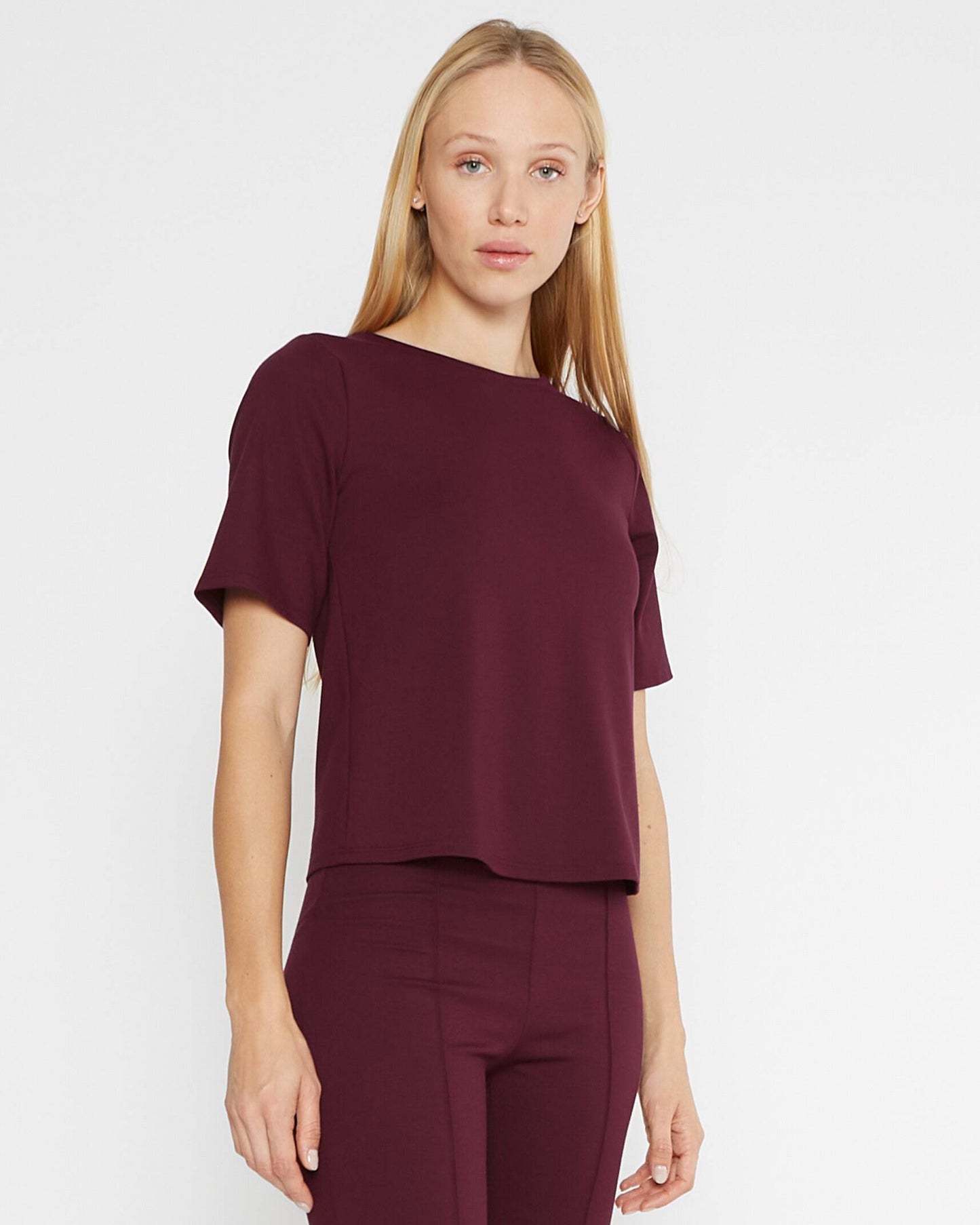 Elderberry Ponte Knit Short Sleeve Top Extended