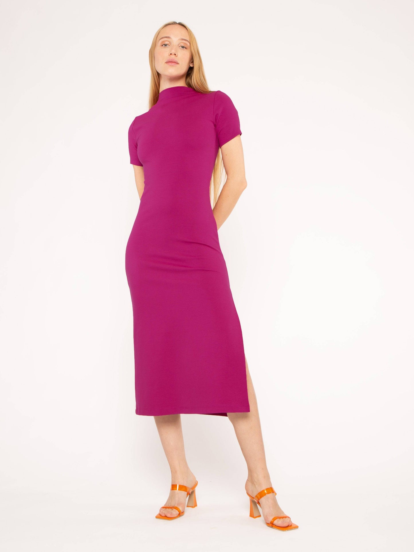 Ponte knit midi-length dress. Fitted but with the perfect flare. The ponte fabric gives the appearance of a structured look with all the comfort of a soft knit.