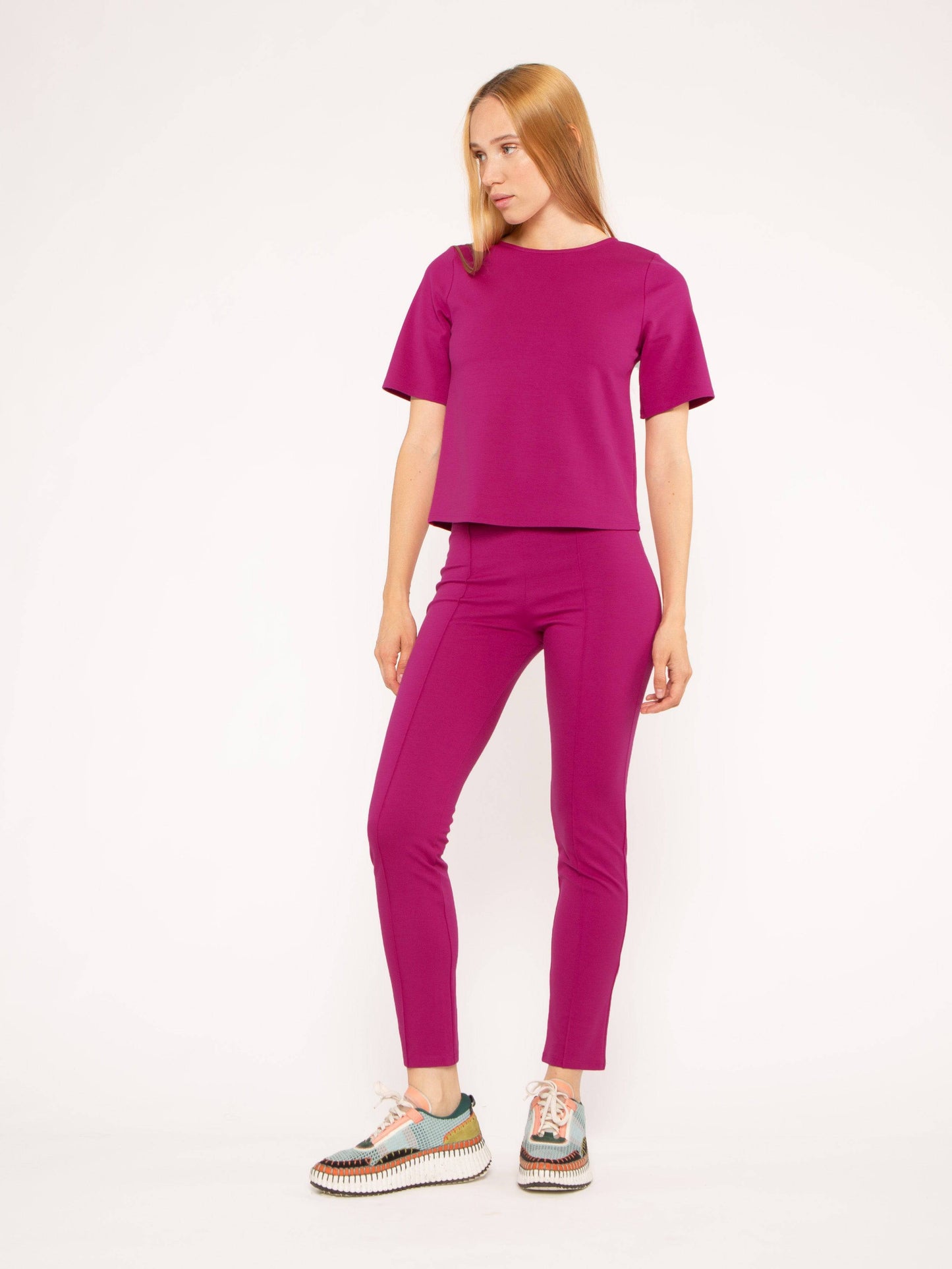 Fuchsia Ponte Knit Slim Leg Pant