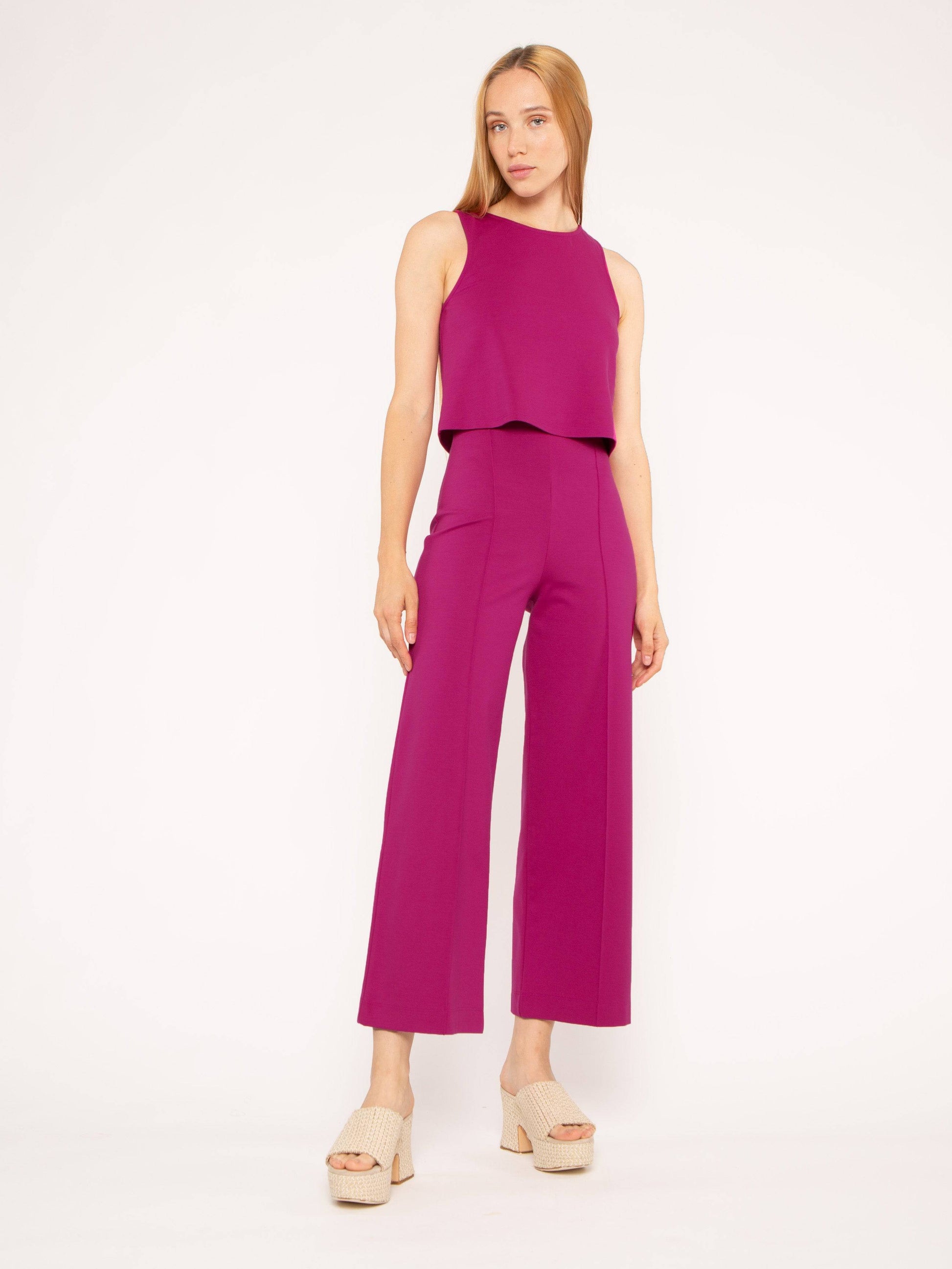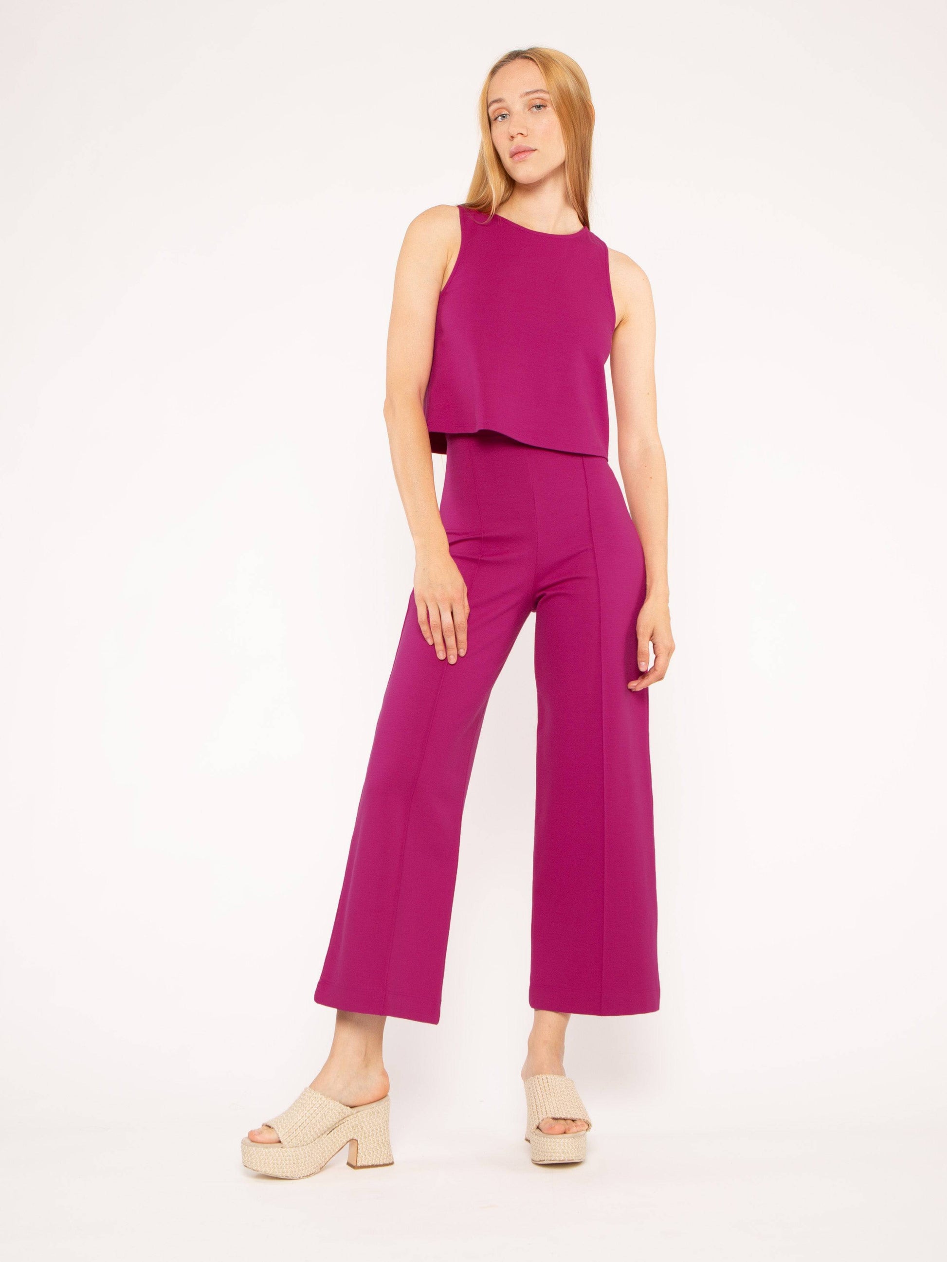 Fuchsia Ponte Knit Straight Leg Pant: Cropped