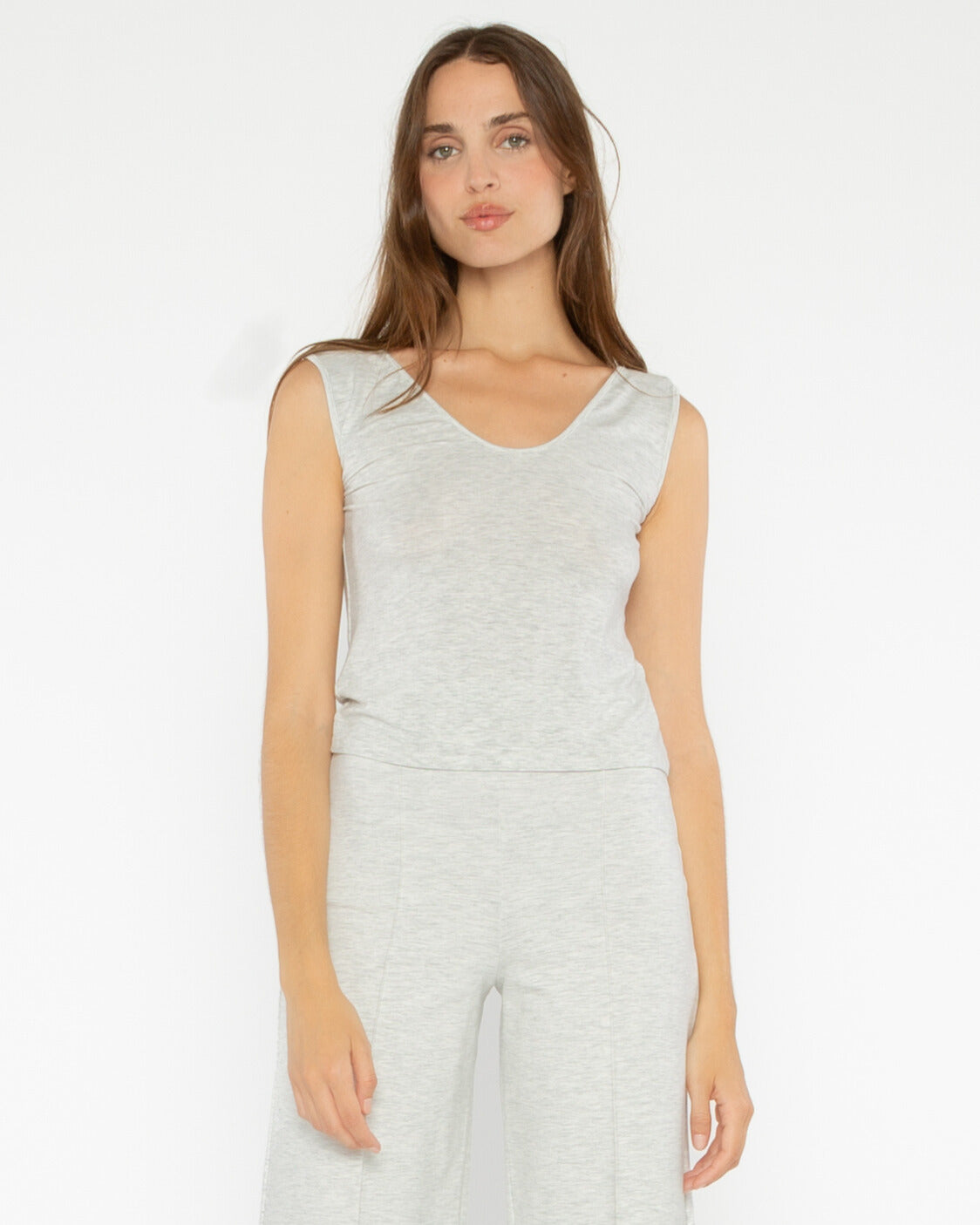 Uber-soft fitted scoop tank top. Made from modal fabric, it stays soft and keeps its shape wear after wear. Length is to the natural waist.