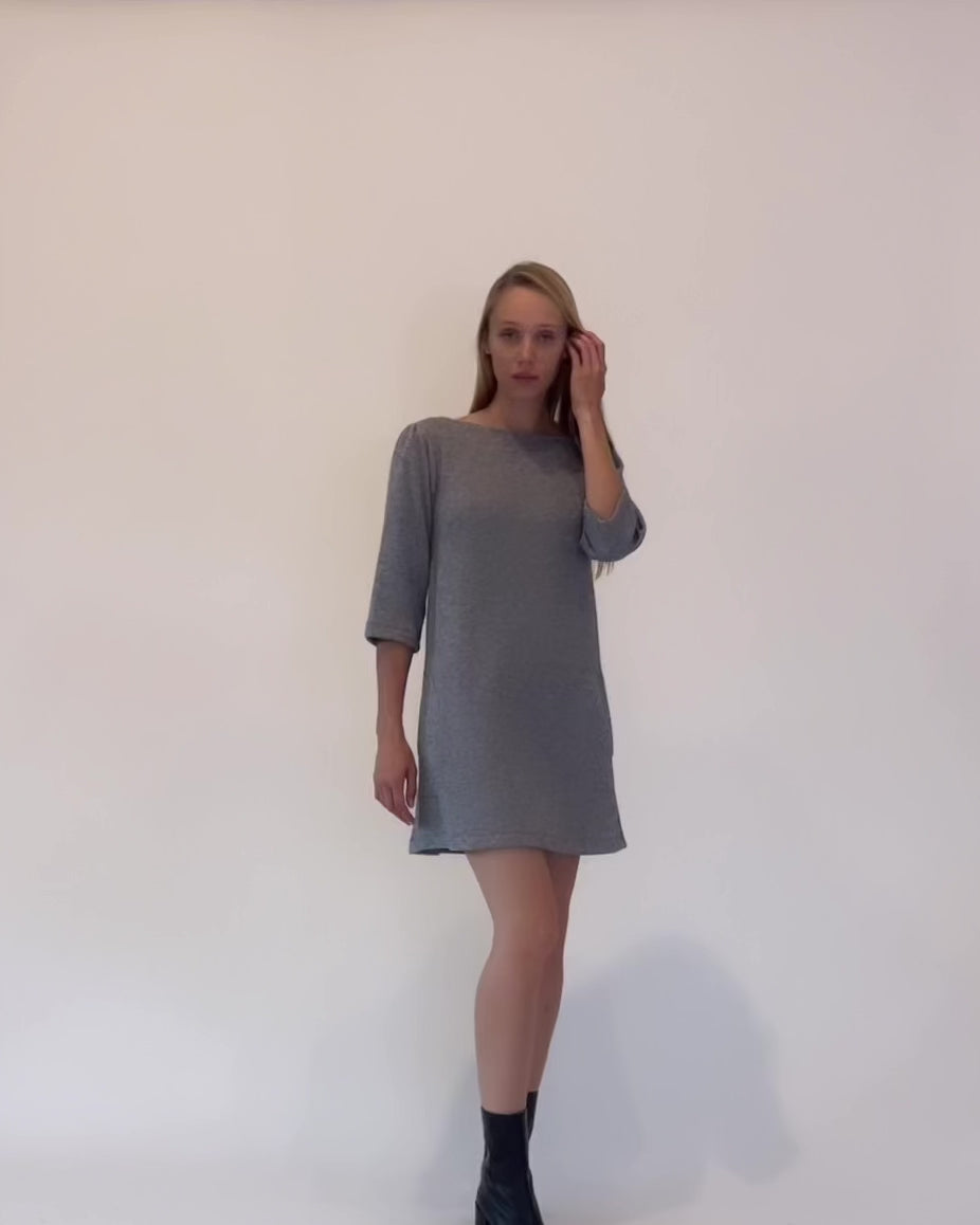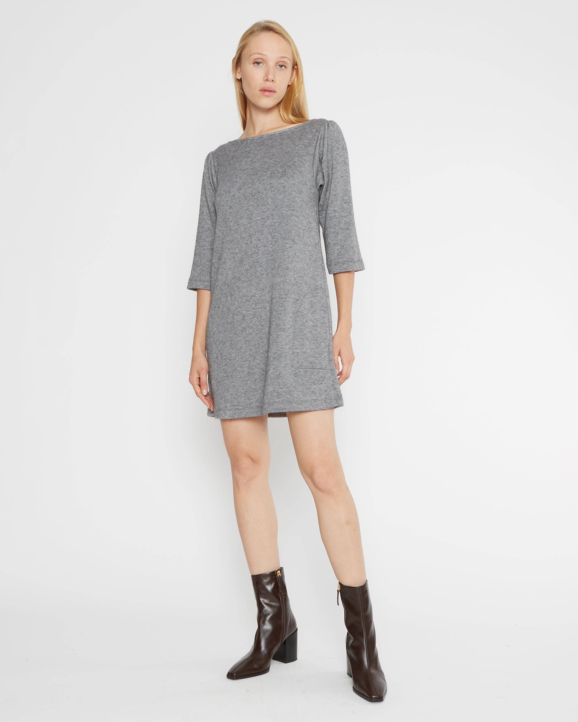 THE go-to dress. 3/4 length sleeve with wide neckline and perfect above-the-knee length of 34". Made from sweater knit as soft as cashmere - comfortable and effortless.