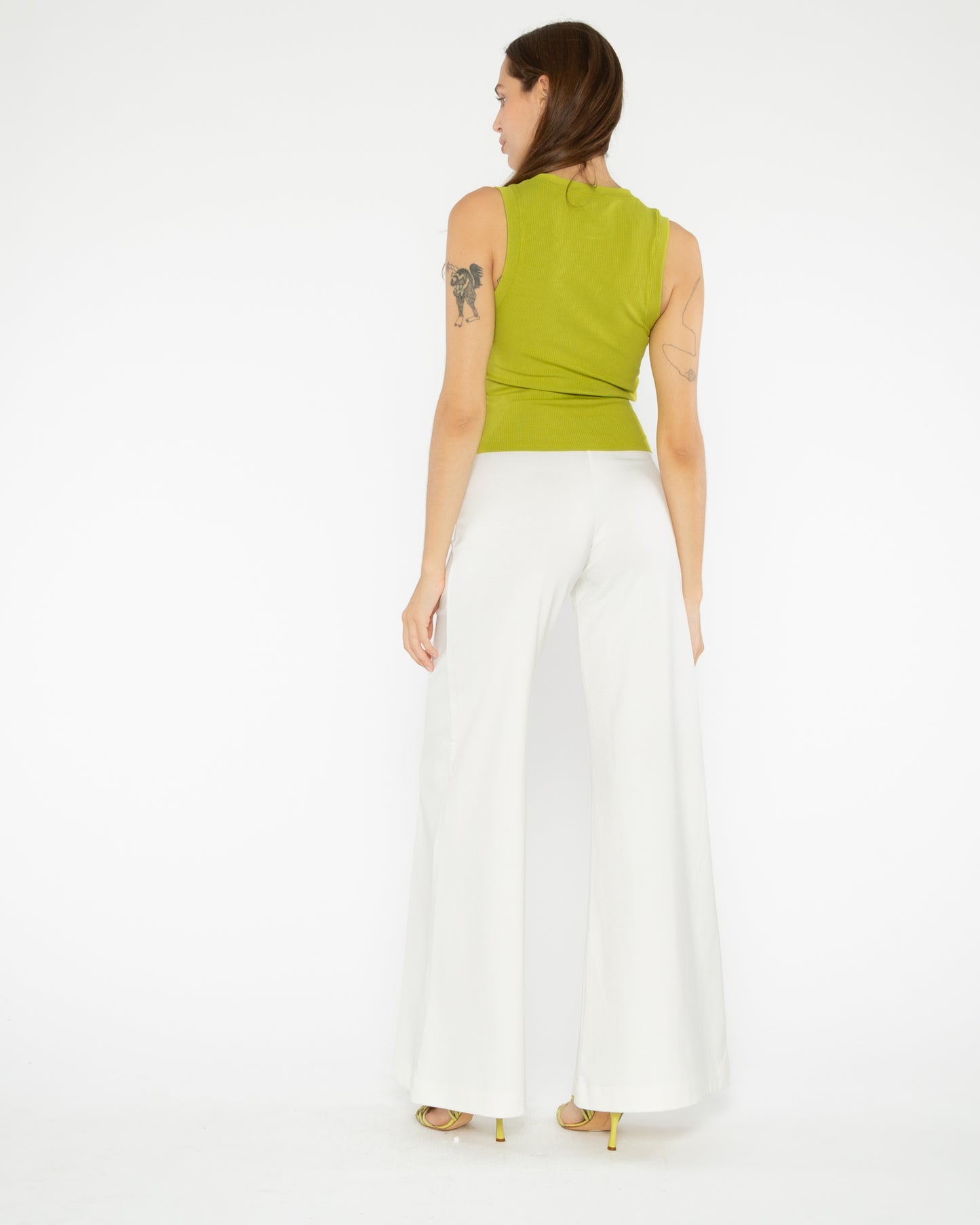 The fitted, ribbed tank is the answer to your tank top needs. The edgy silhouette separates it from the pack. The perfect pairing for the Ripley Rader iconic wide leg pant or rib midi skirt.