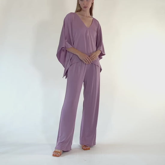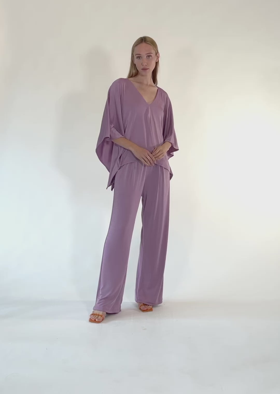Our Short Caftan Dress as a Top! Wrinkle-free slinky fabric. The Caftan top pairs perfectly with our lounge pant- perfect for relaxing by the beach or entertaining at home. Effortless. Stunning.