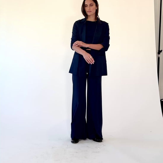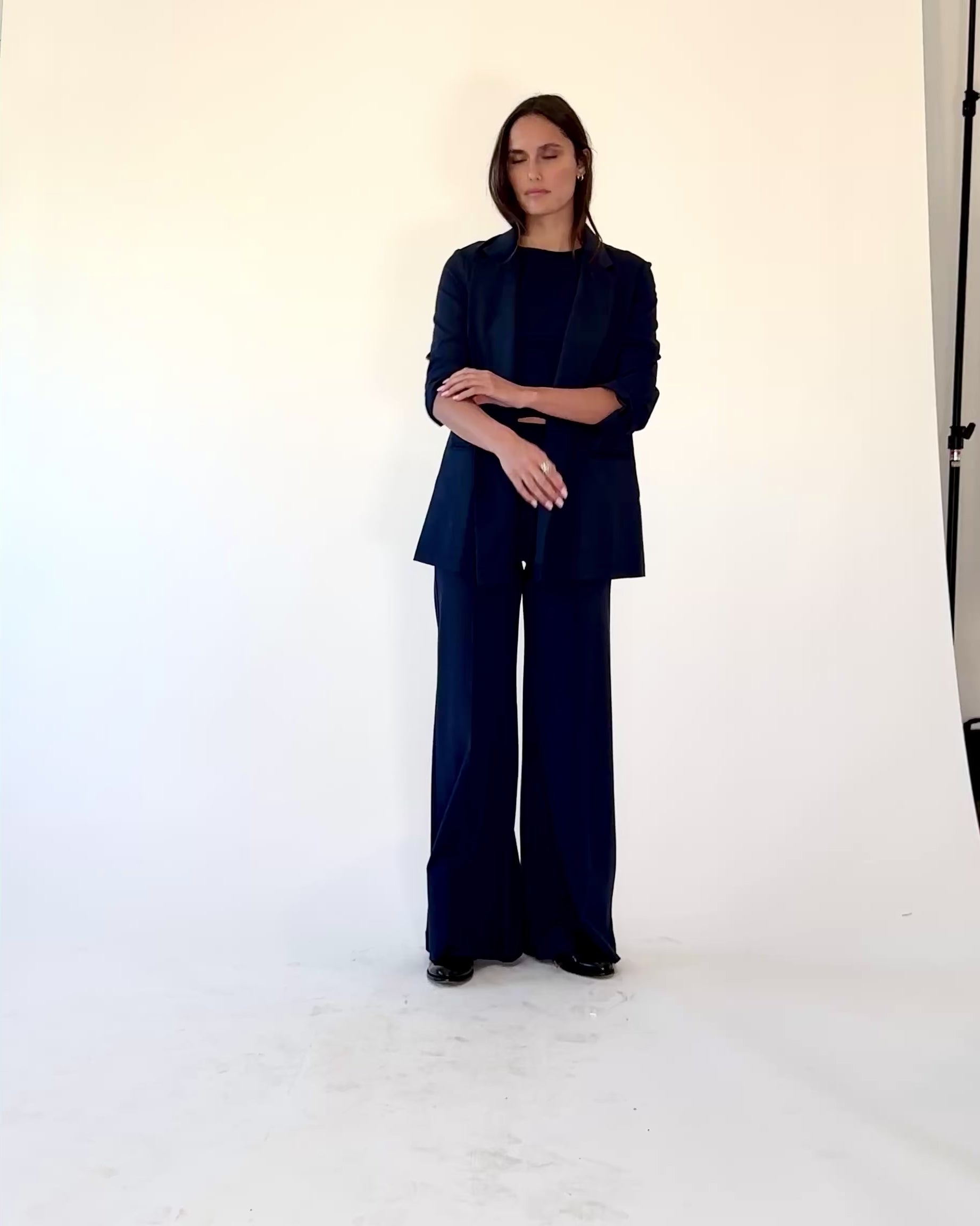 Finished with self-lined lapels, dropped shoulders, and deep pockets, it layers seamlessly over everything from wide-leg pants to denim. Travel-ready and endlessly versatile, it’s the blazer that looks polished without trying too hard.