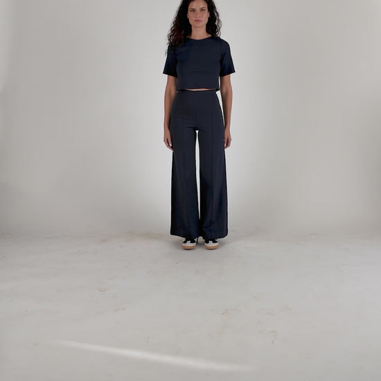 Structured, chic, and effortless. This modern silhouette hits at the natural waist with a flattering square cut, tailored sleeves, and a refined finish. Crafted from our signature luxe ponte knit, it blends the polish of suiting with the ease of a knit — designed to pair perfectly with our iconic wide-leg pants for a sleek, coordinated look.