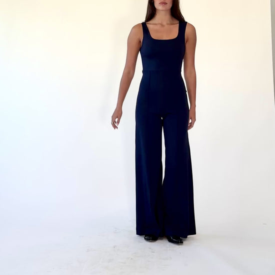 Navy Ponte Knit Tank Wide Leg Jumpsuit