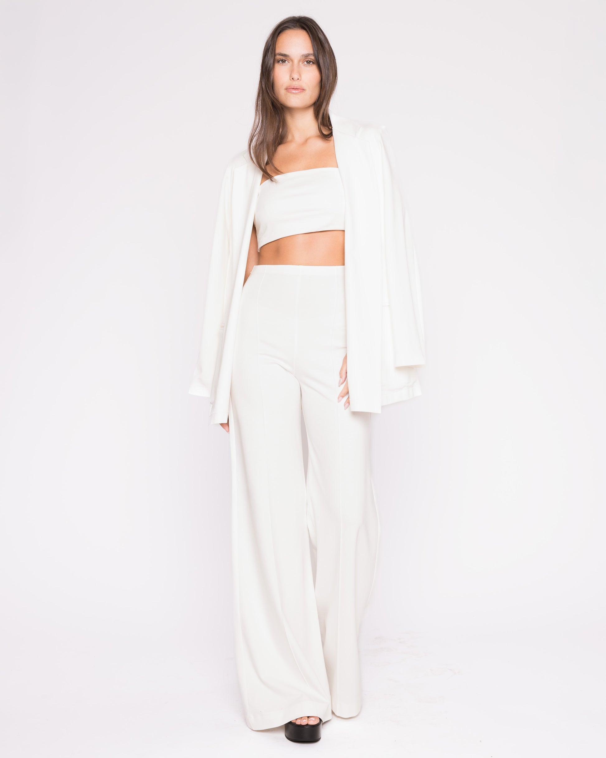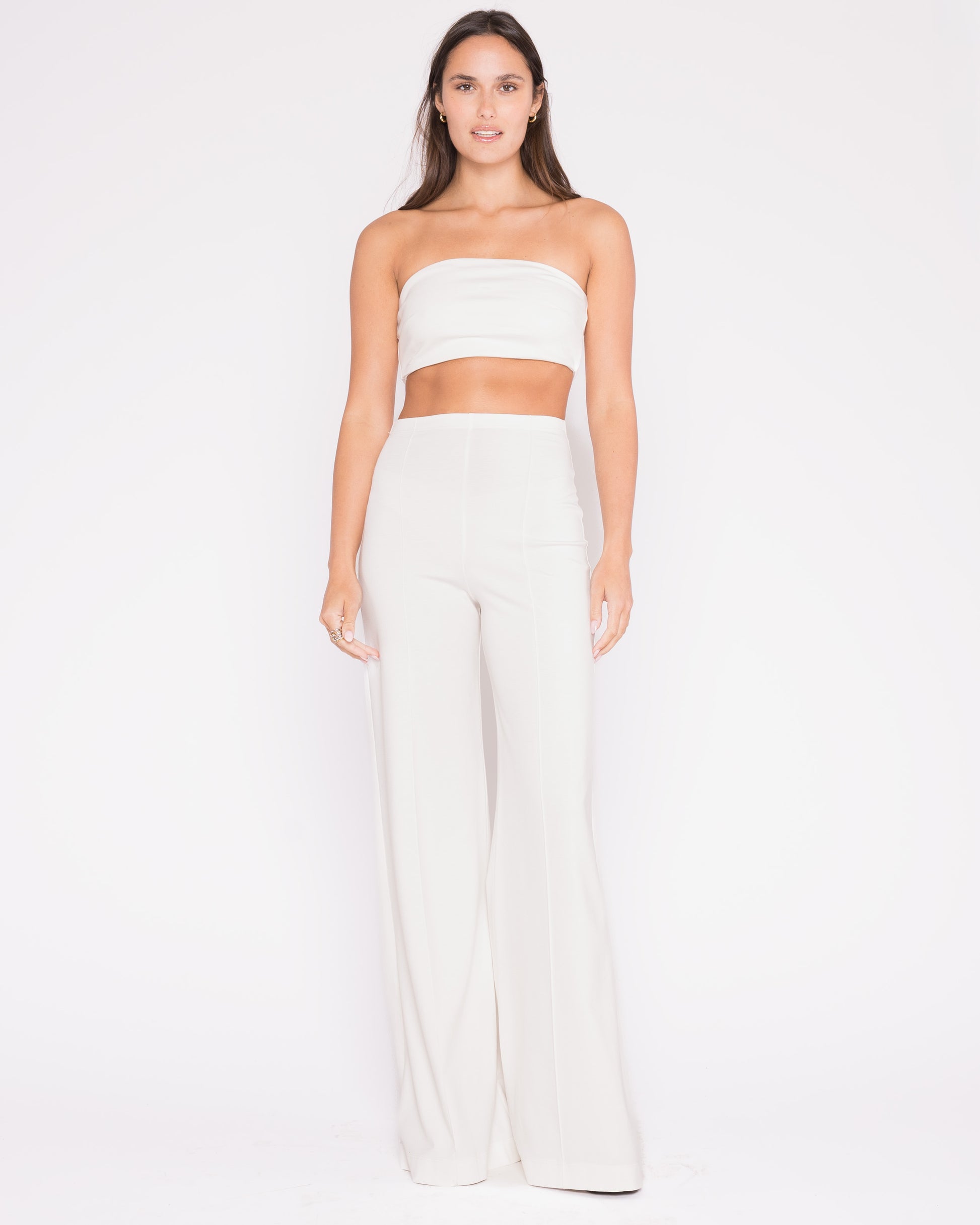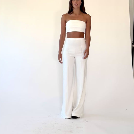 Crafted from our signature luxurious ponte knit, this top offers the look of structured tailoring with the soft stretch of a knit. The minimalist, strapless design is made to stand alone or layer under your favorite blazer — and it pairs effortlessly with our iconic wide-leg ponte pants or high-waisted skirt for a sleek, elevated set.