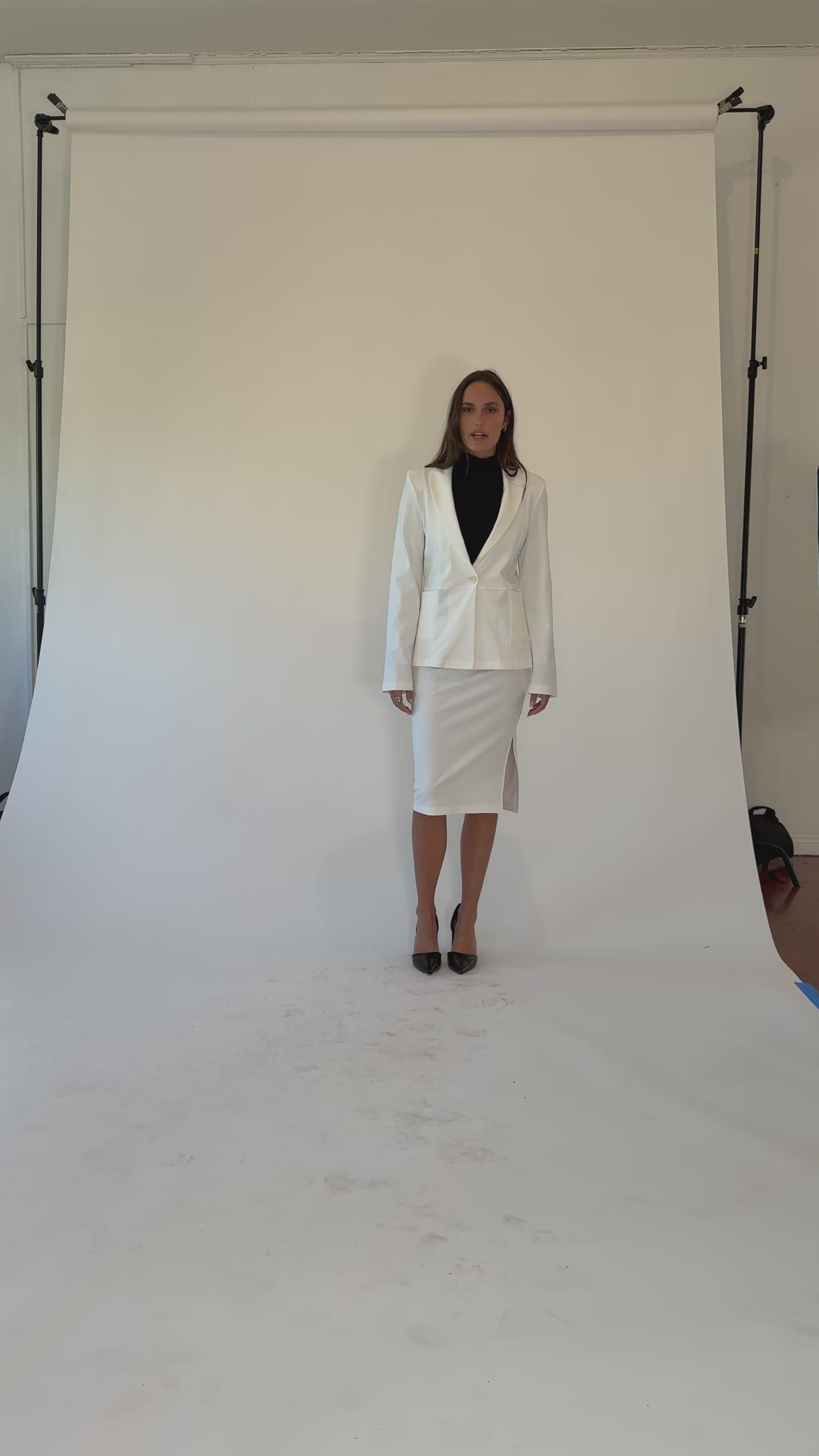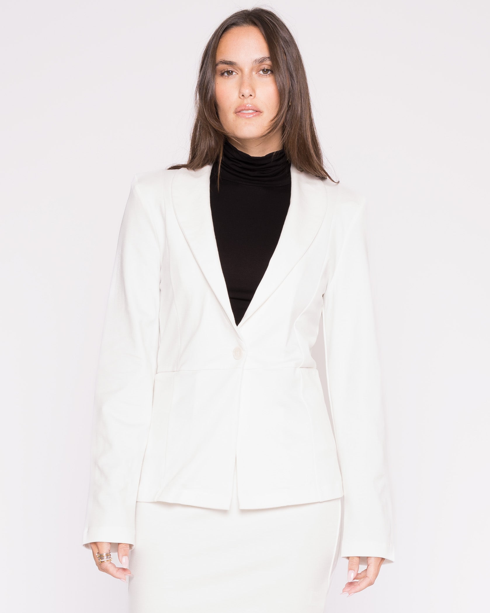 Designed with self-lined lapels, structured shoulders, and discreet pockets, the fitted silhouette is cut to flatter — balancing professional polish with off-duty cool. Pair it with The Perfect Pant for a monochrome moment or throw it over denim for everyday edge.