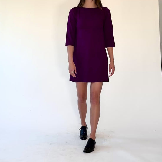 Effortless shape, everyday chic. Timeless and versatile, this dress features a softly tailored A-line silhouette with ¾-length sleeves, a wide neckline, and a flattering above-the-knee length.