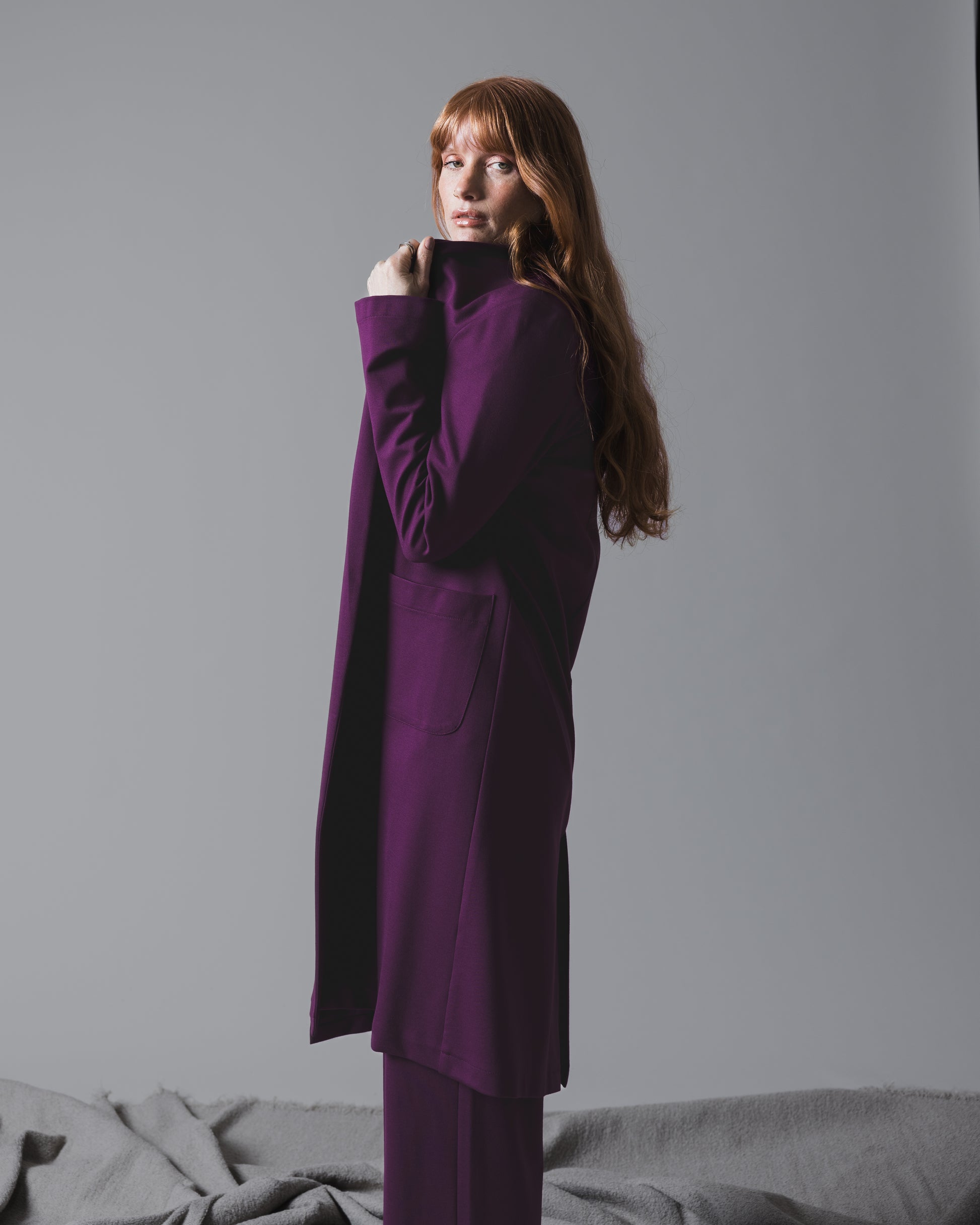 Plum Ponte Knit Smoking Jacket