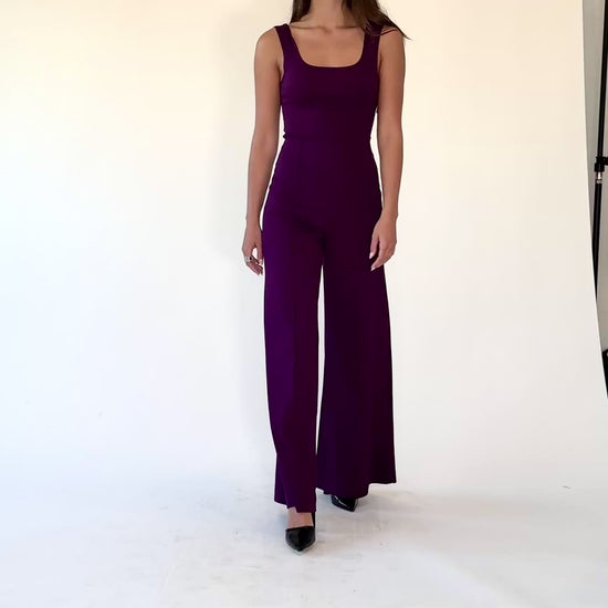 Plum Ponte Knit Tank Wide Leg Jumpsuit