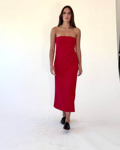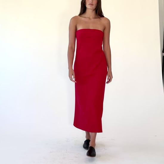Sculpted. Secure. Effortlessly refined. Our elevated take on the strapless column dress is crafted from signature ponte knit for structure, comfort, and understated drama.