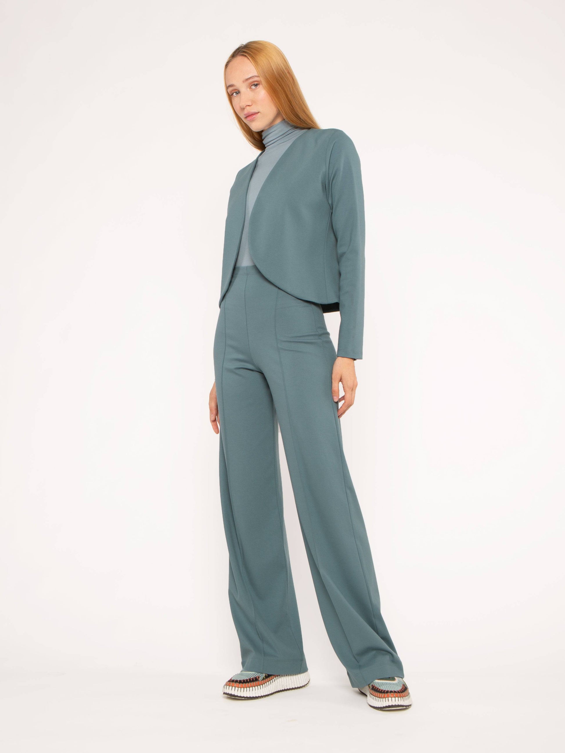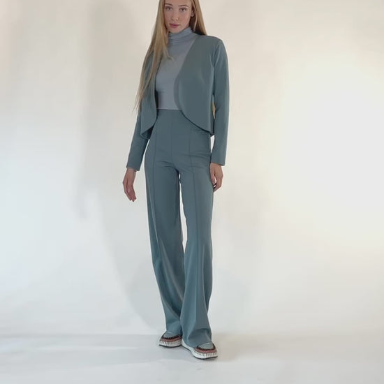 Made from our signature luxurious ponte knit, the fabric gives the appearance of polished suiting with the comfort and stretch of a knit — and it’s wrinkle-resistant. Clean lines, refined detailing, and a cropped cut make it the perfect topper for high-waisted trousers, wide-leg pants, or a fitted skirt.