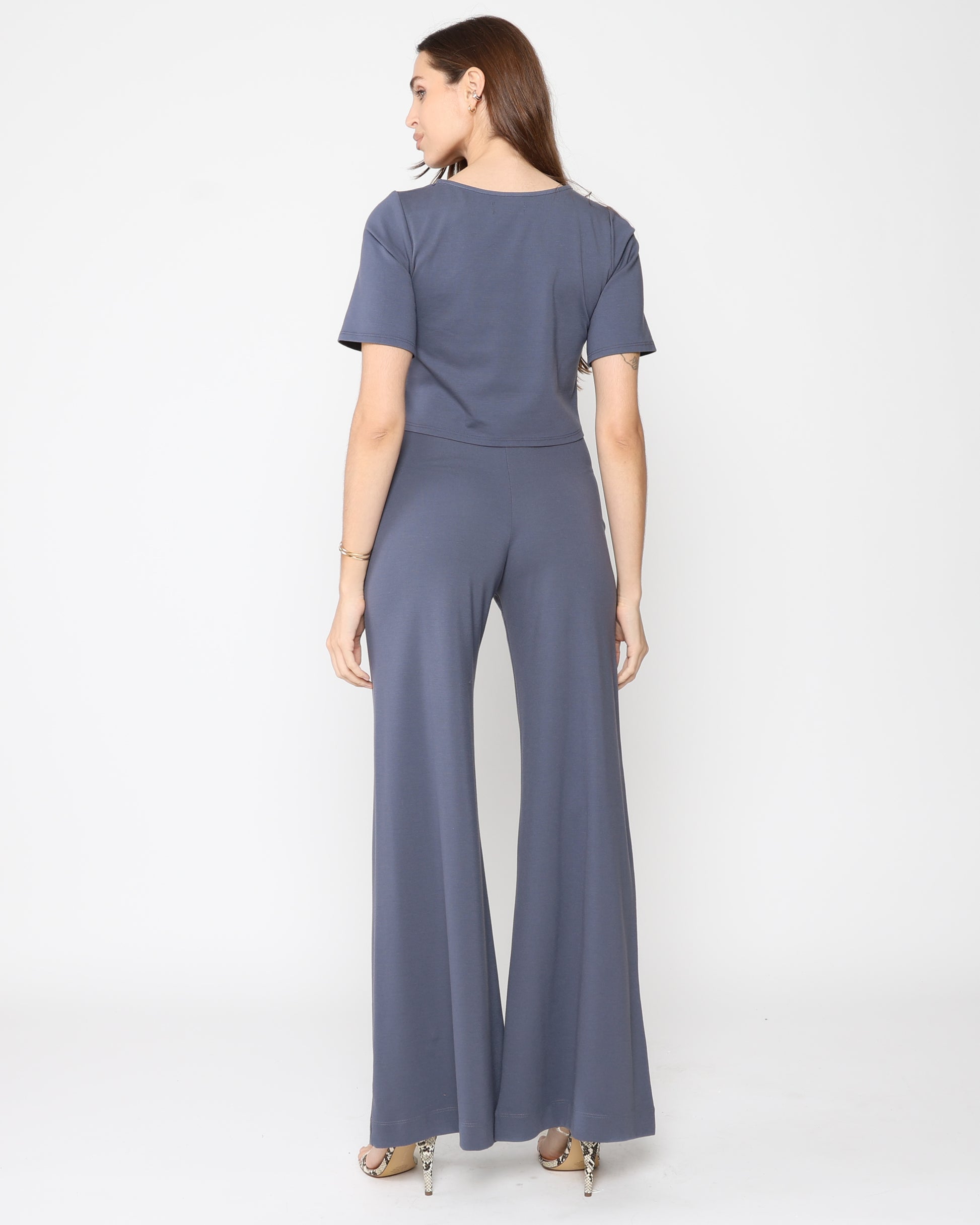 Structured, chic, and effortless. This modern silhouette hits at the natural waist with a flattering square cut, tailored sleeves, and a refined finish. Crafted from our signature luxe ponte knit, it blends the polish of suiting with the ease of a knit designed to pair perfectly with our iconic wide-leg pants for a sleek, coordinated look.