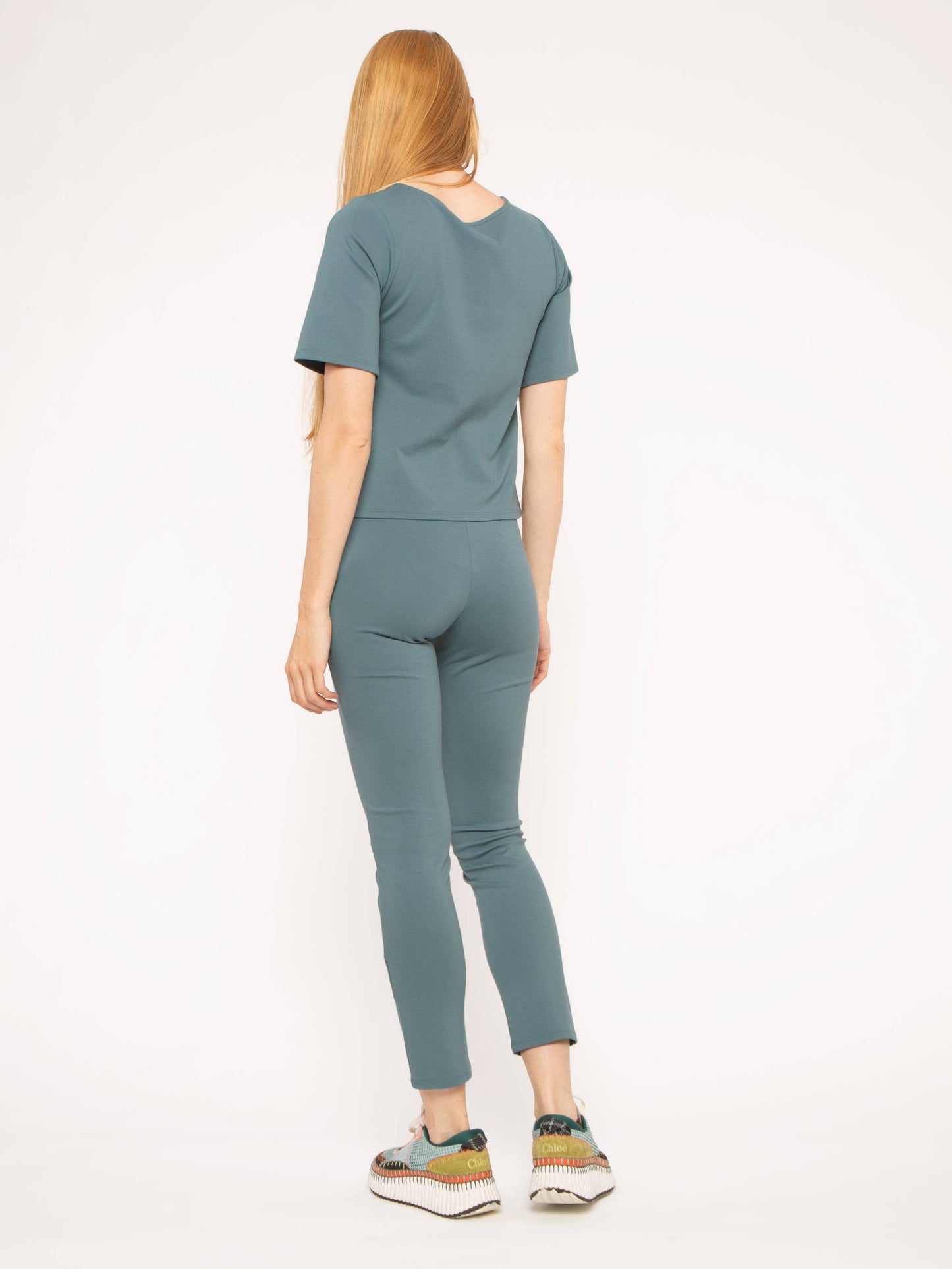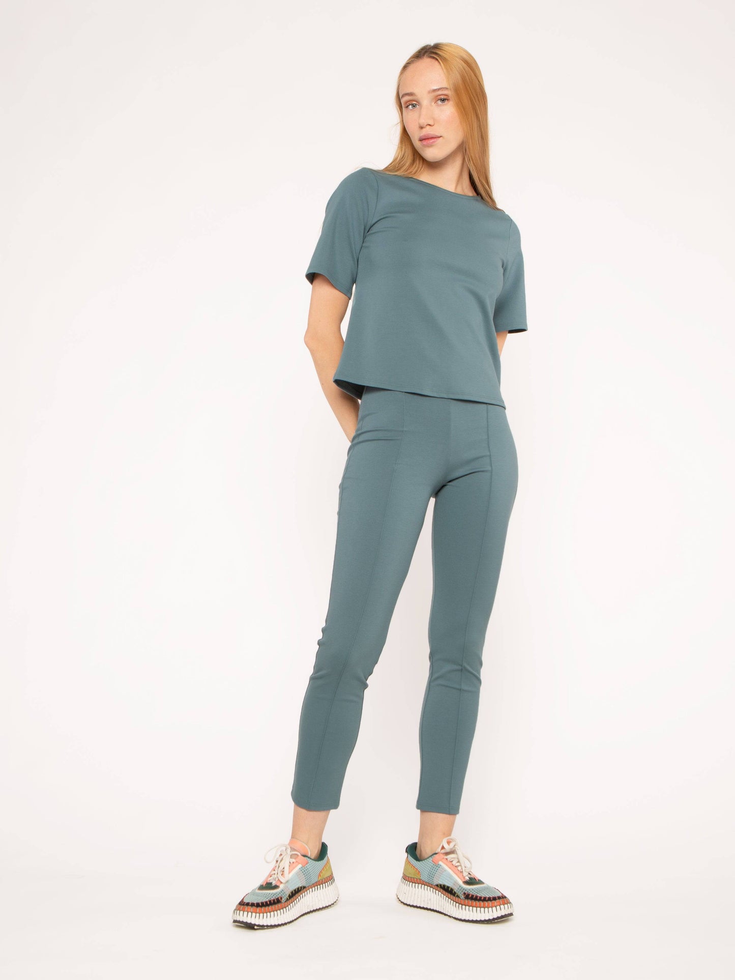 Sea Blue Ponte Knit Short Sleeve Top Extended