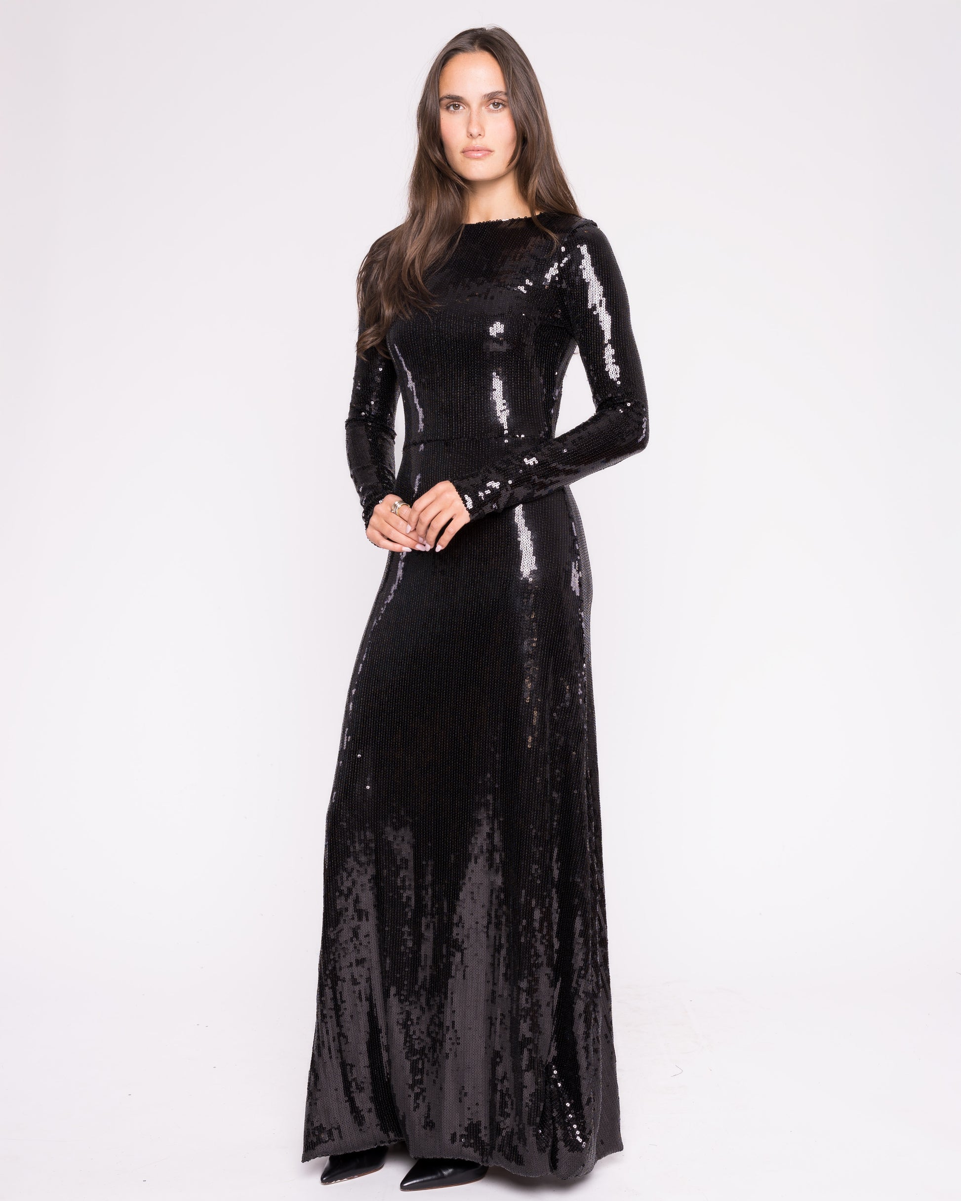 Designed with extra-long sleeves and a classic crew neckline, this piece embodies elegant simplicity with a bold edge. Proudly made in Los Angeles, it’s your go-to for holiday soirées, galas, and any moment that calls for quiet confidence and all-out shine.