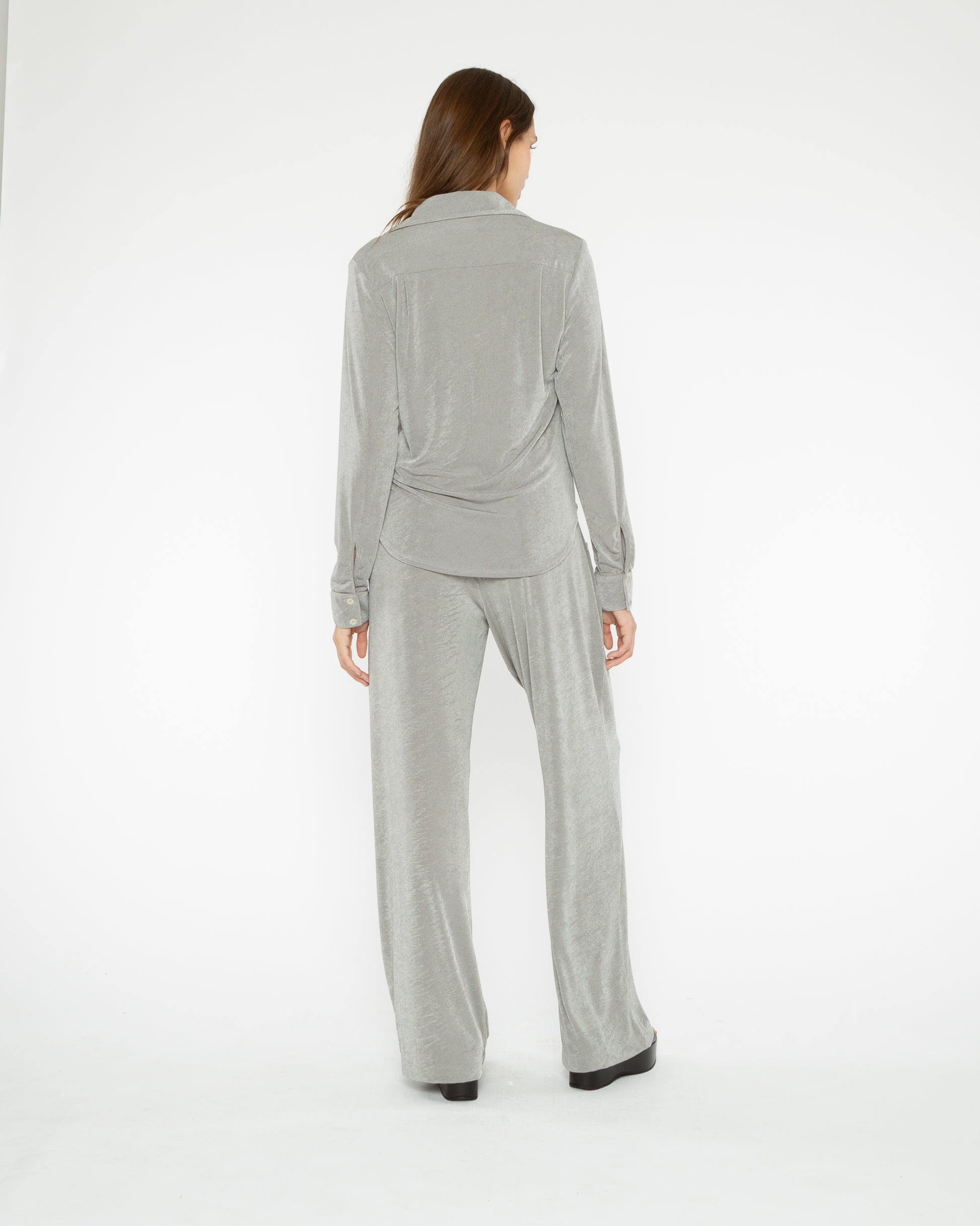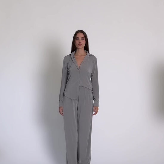 Our button down is made out of gorgeous slinky fabric. This will be your new go-to top, easily transitions from day to night.