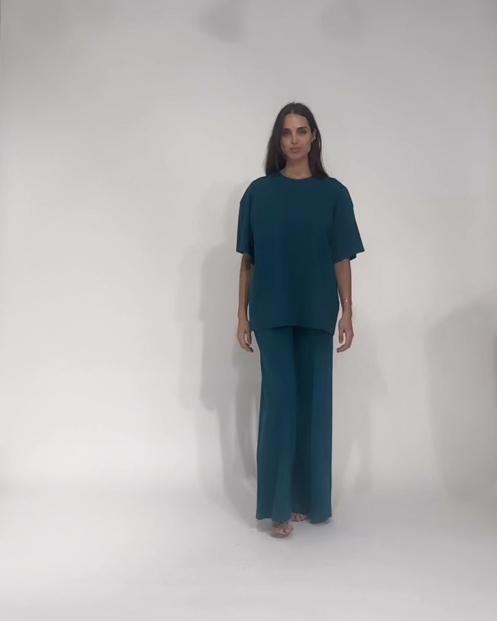 Teal Ponte Knit Big Shirt