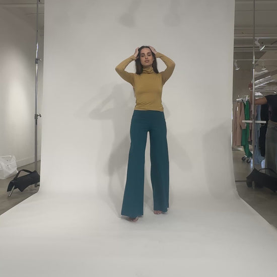 The intentionally long inseam is perfect for pairing with heels. To achieve the same elevated look seen on our 5'10" model, simply hem the pant so it grazes about ¼" above the ground when worn with shoes. Trust us, it makes all the difference.