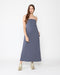 Designed with a built-in bandeau and rubber elastic at the bust, it ensures a secure, no-slip fit while creating a clean, elongated line. Functional self-lined pockets add ease without disrupting the sleek silhouette.