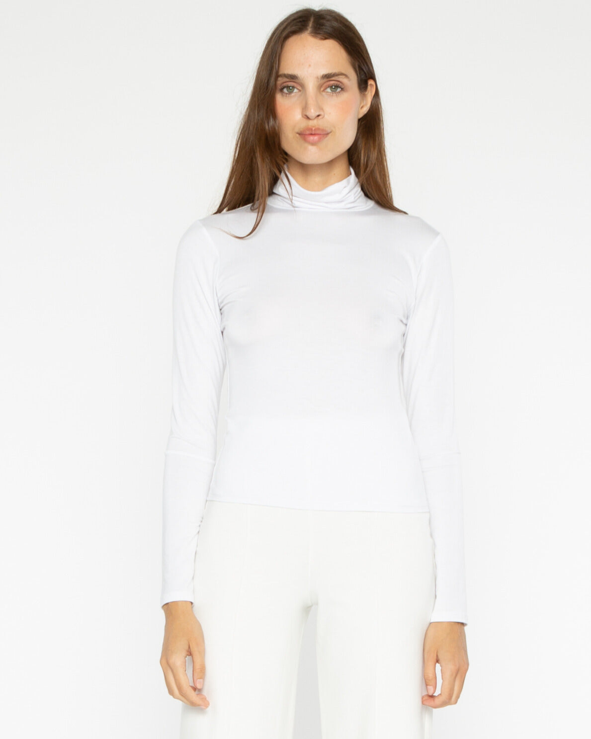 Ballet-inspired, butter-soft, effortlessly essential. This timeless turtleneck features a sleek, body-hugging silhouette with a high neckline and extra-long sleeves for a refined finish.